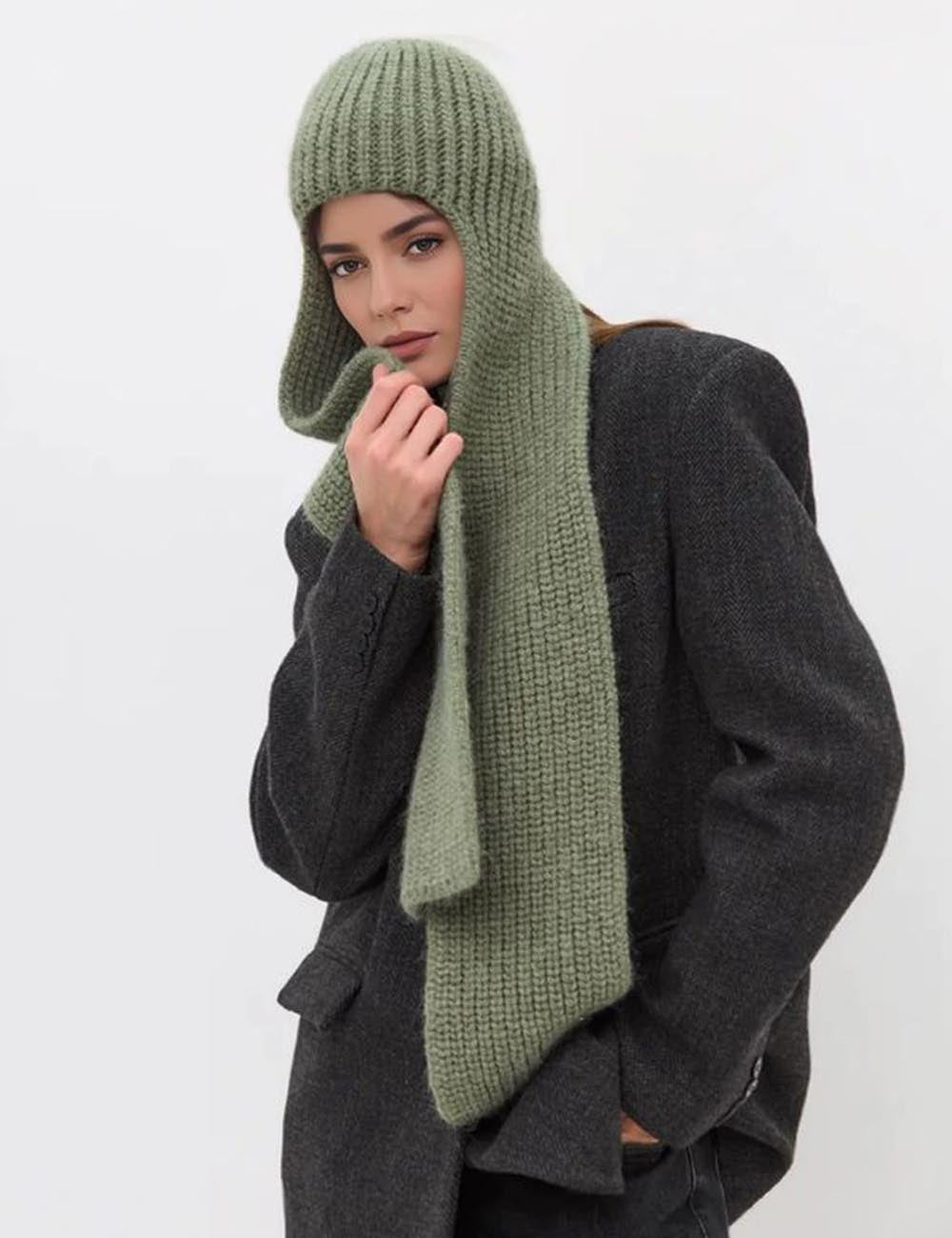 Minimalist Thermal Solid Color Knitted Hooded Scarf DP25H690