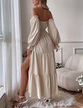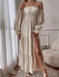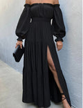 Off Shoulder Flounce Side Split Maxi Dress DP25E685