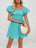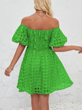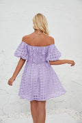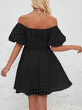 Off Shoulder Puff Sleeves Pleated Mini Dress DP25C472