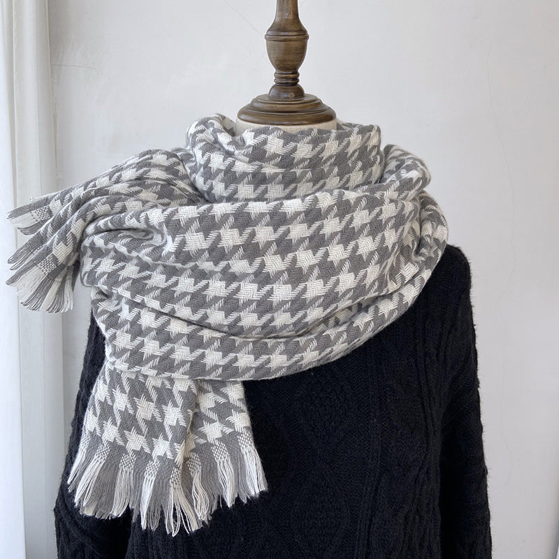 Plaid Color Contrast Warm Tassel Scarf DP25H682