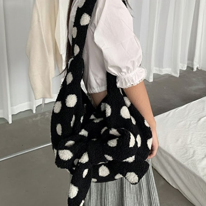 Polka Dots Plush Large Capacity Shoulder Bag DP25H588