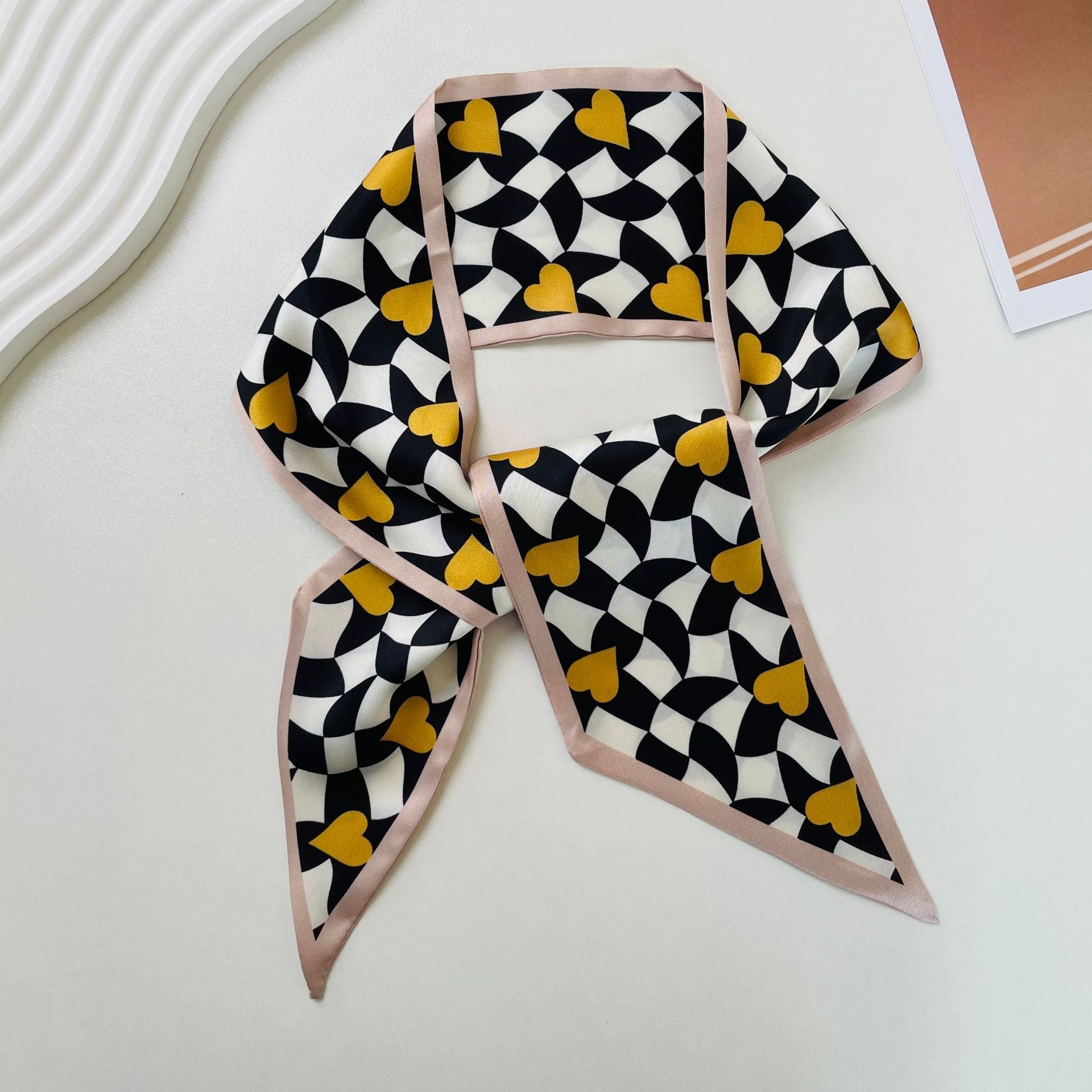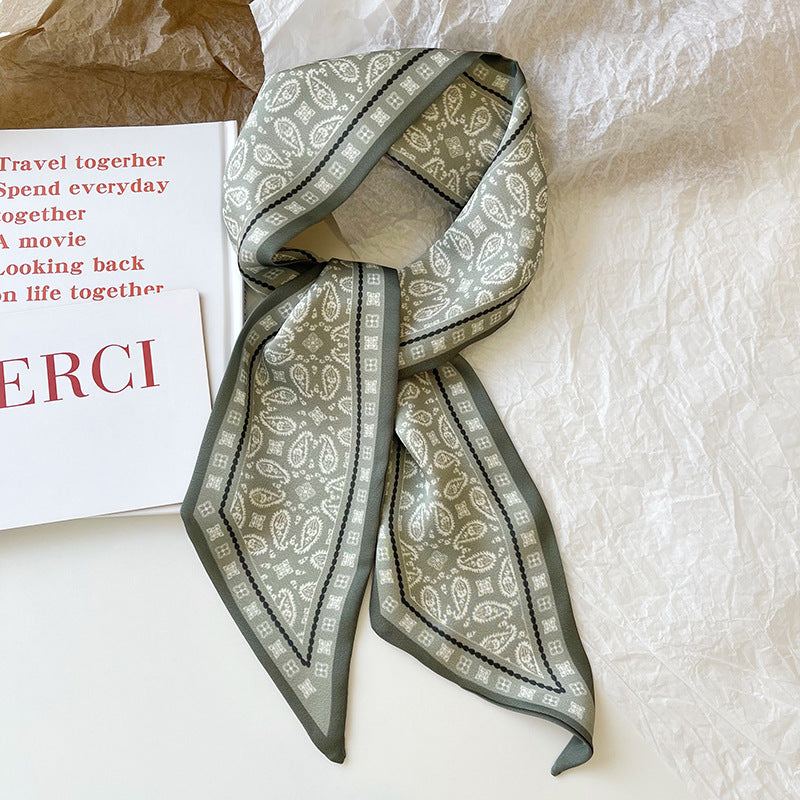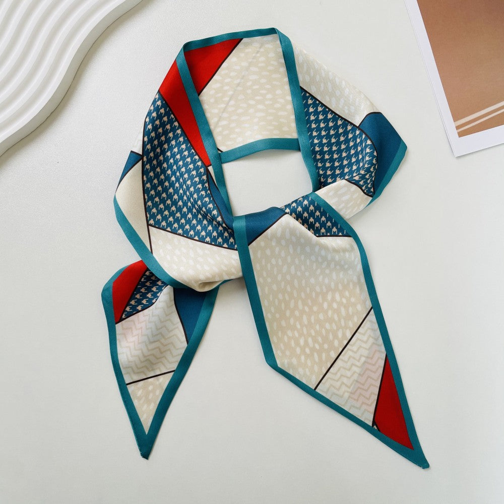 Print Narrow Long Satin Silk-Feel Scarf DP25G511