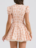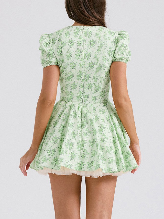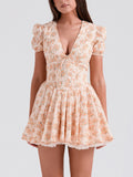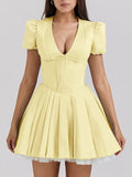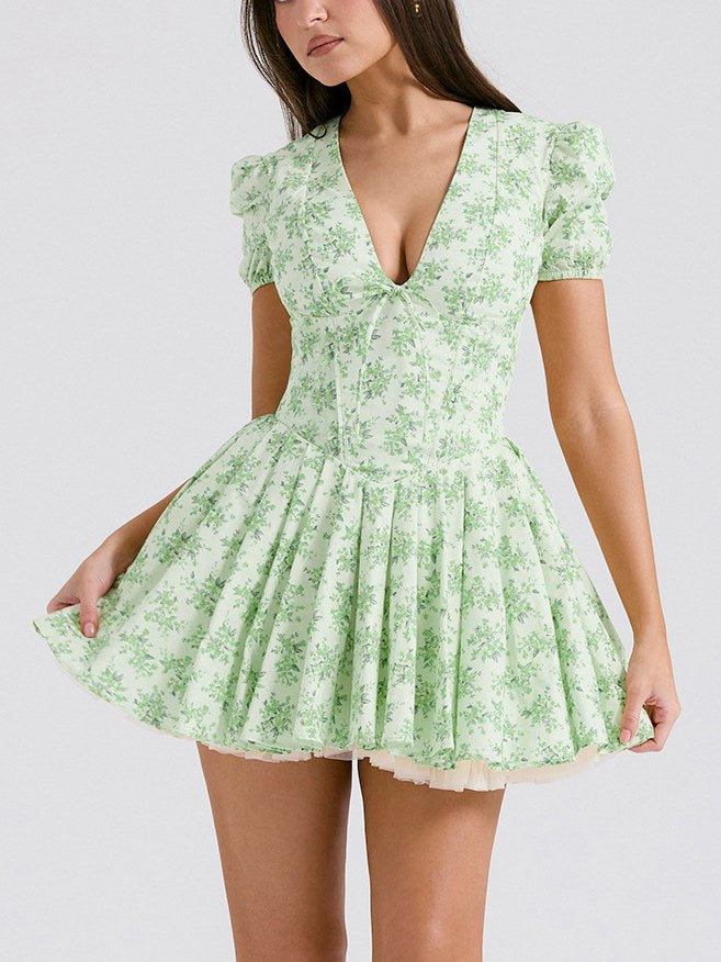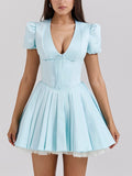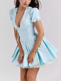 Puffy Sleeves V-Neck A Line Mini Dress DP25C477