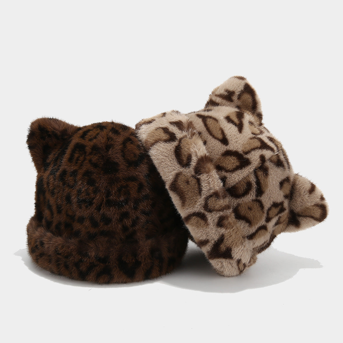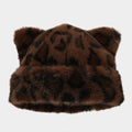 Retro Fluffy Leopard Cat Ears Warm Beanie Cap DP25G744