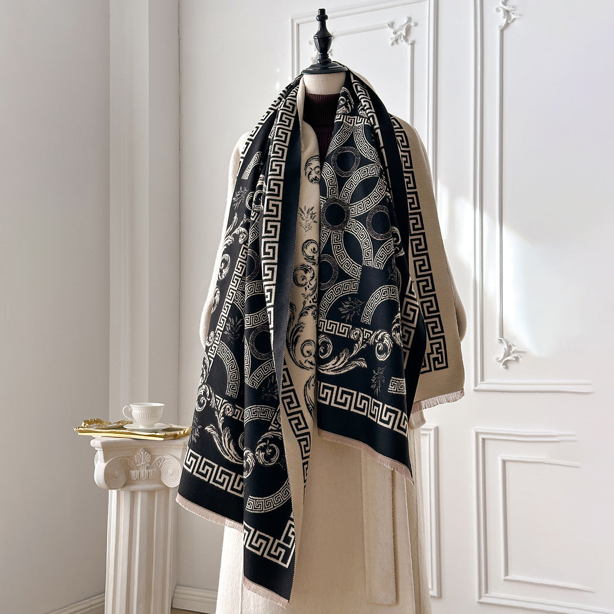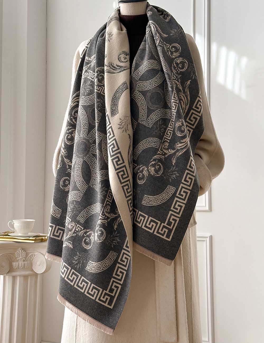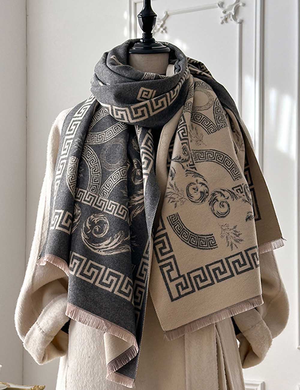Retro Jacquard Reversible Soft Blanket Winter Scarf DP25H675