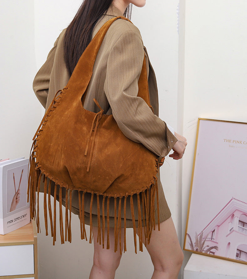 Retro Tassel Hobo Velvet Shoulder Bag DP25G641
