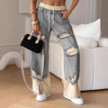 Ripped Drawstring Color Block Straight Leg Jeans DP25G915