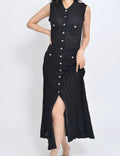 Round Neck Button Down Sleeveless Knit Dress DP25G536