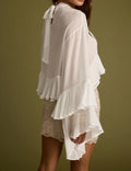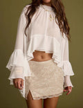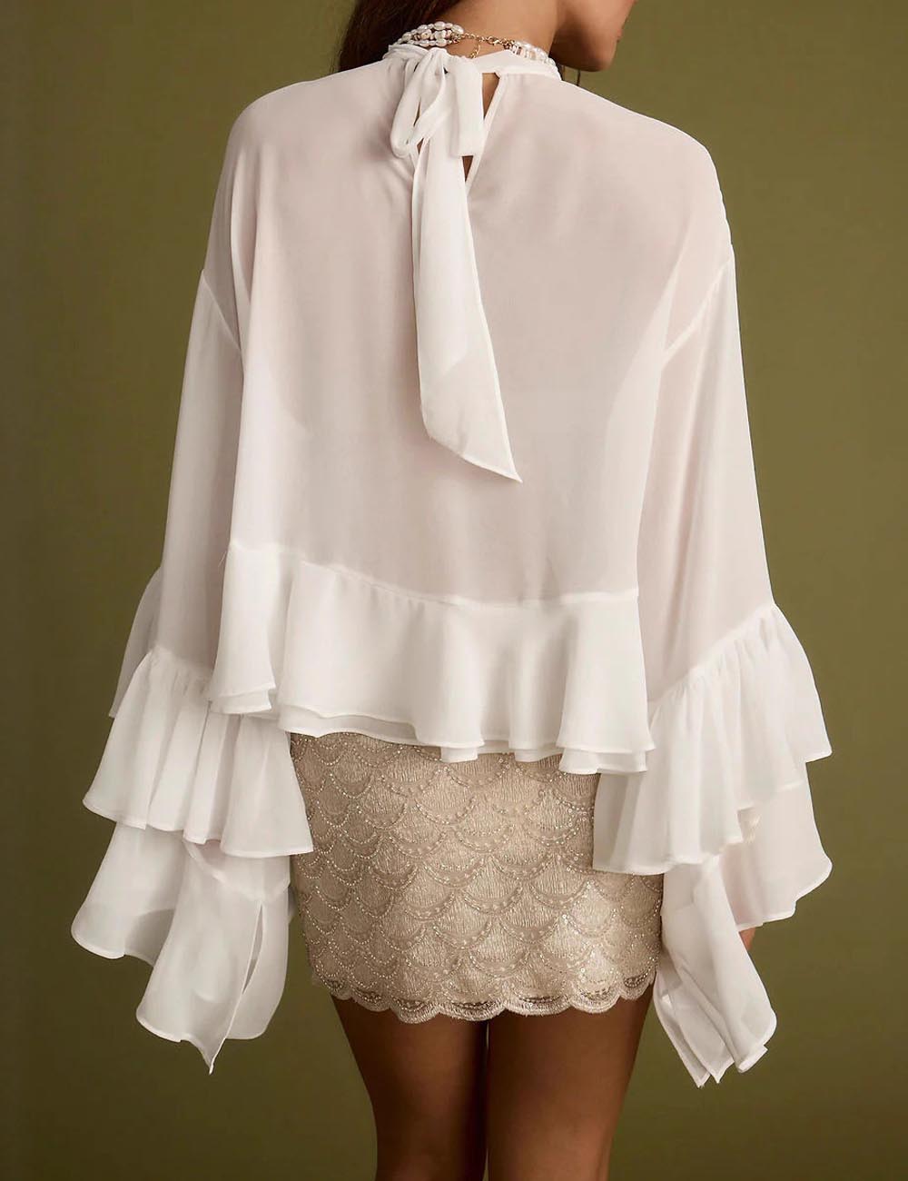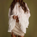 Round Neck Long Sleeve Ruffle Chiffon Shirt DP25F502
