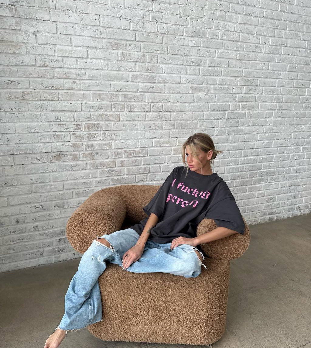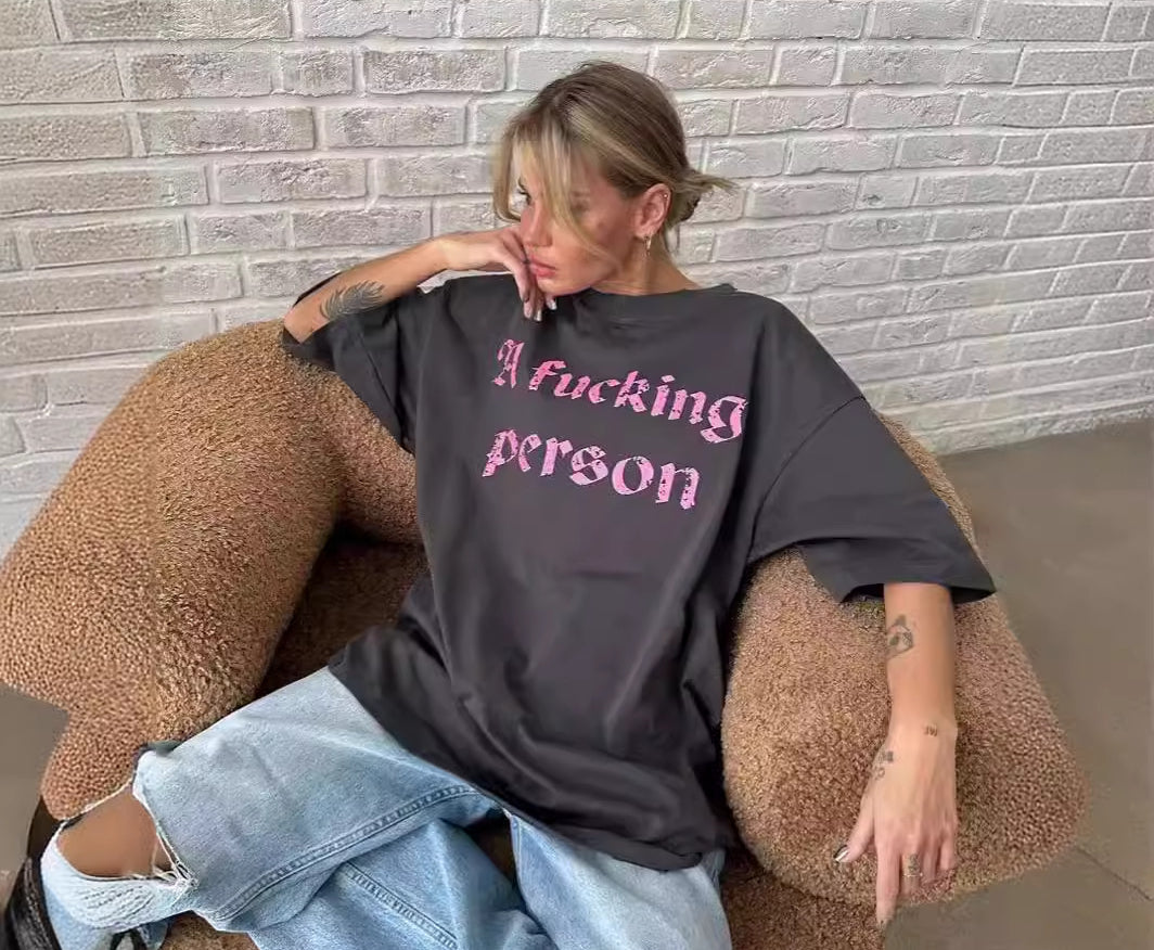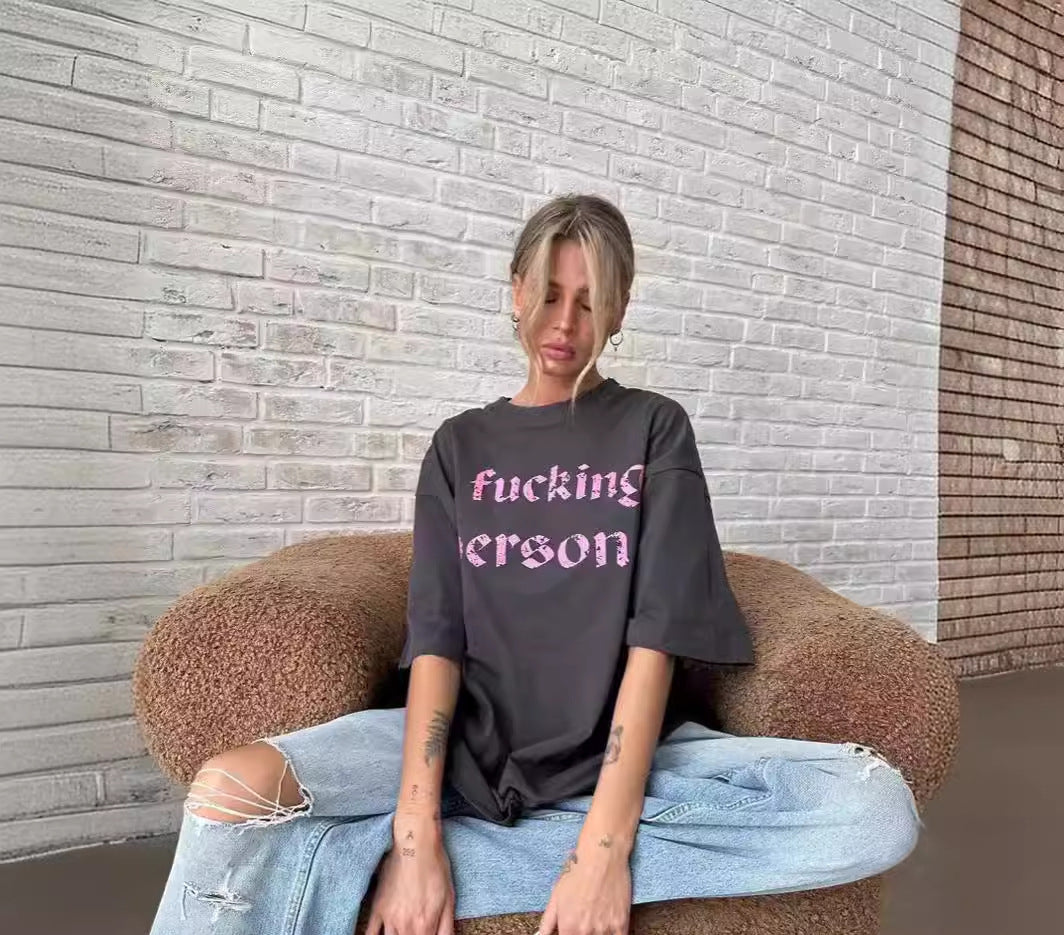 Round Neck Print Loose Short Sleeves Top DP25B445