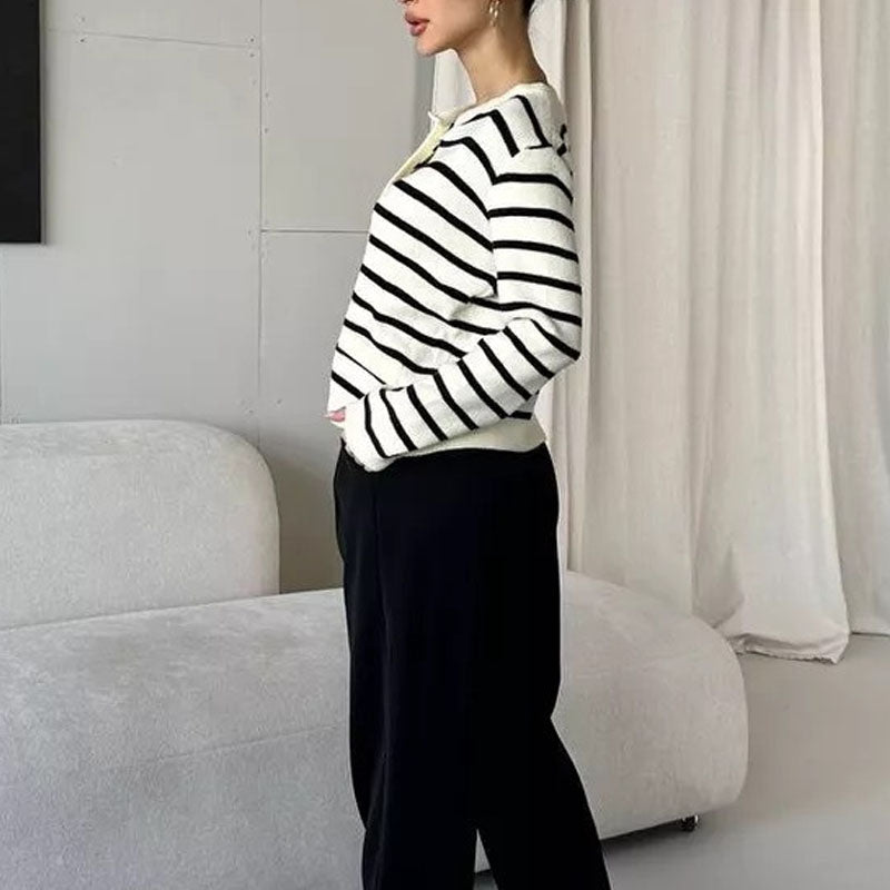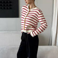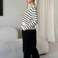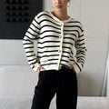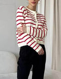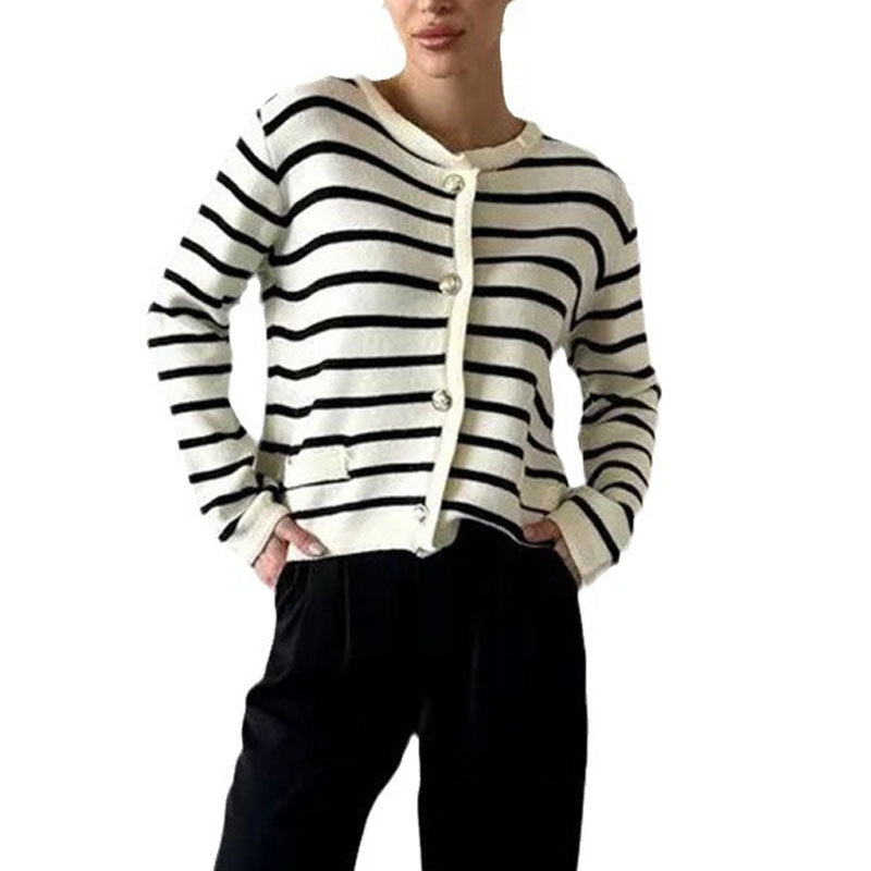 Round Neck Striped Long Sleeve Knit Cardigan DP25G977