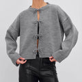 Round Neck Tie Front Long Sleeve Cardigan DP25F532