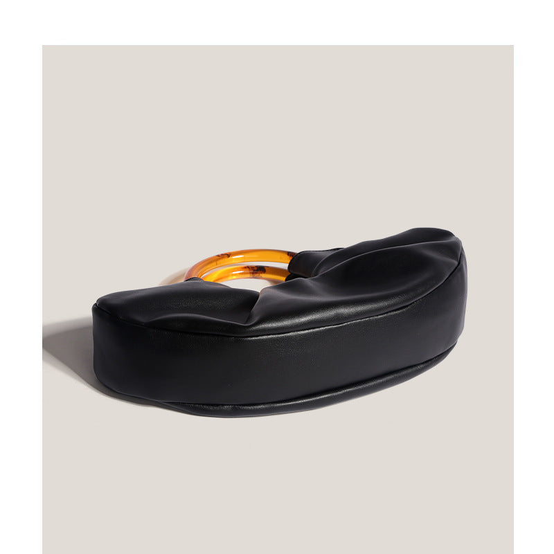 Ruched Cloud Round Handle PU Leather Handbag DP25H599