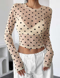 Sexy Polka Dots Mesh Long Sleeve Sheer Blouse DP25G999