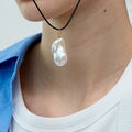 Simple Baroque Pearl Pendant Leather Cord Necklace DP25F846