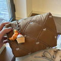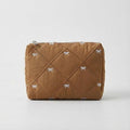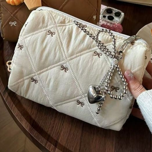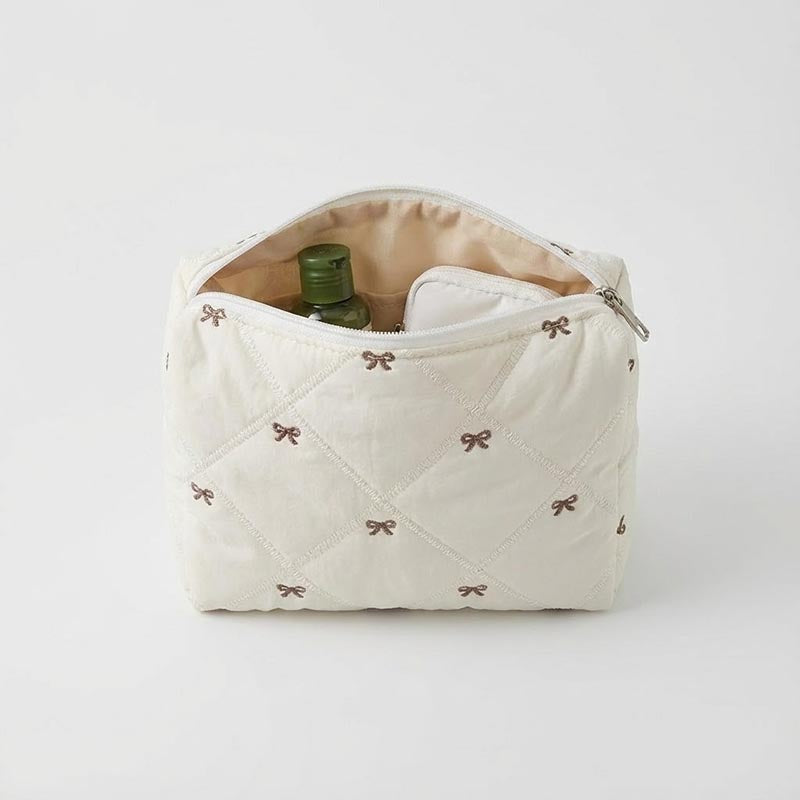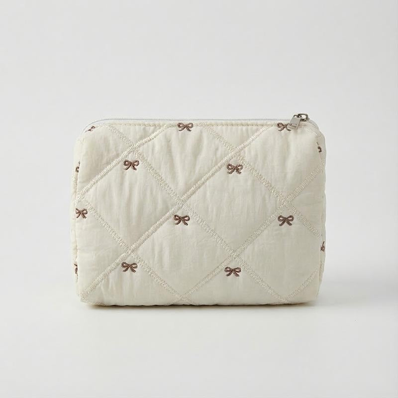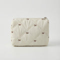 Simple Cotton Quilted Bow Embroidery Cosmetic Bag DP25H547