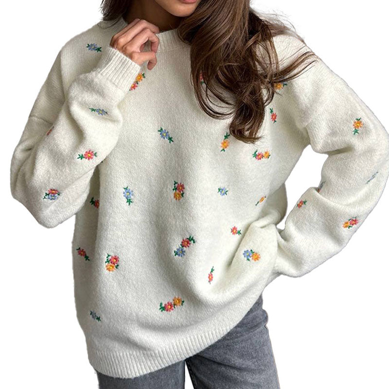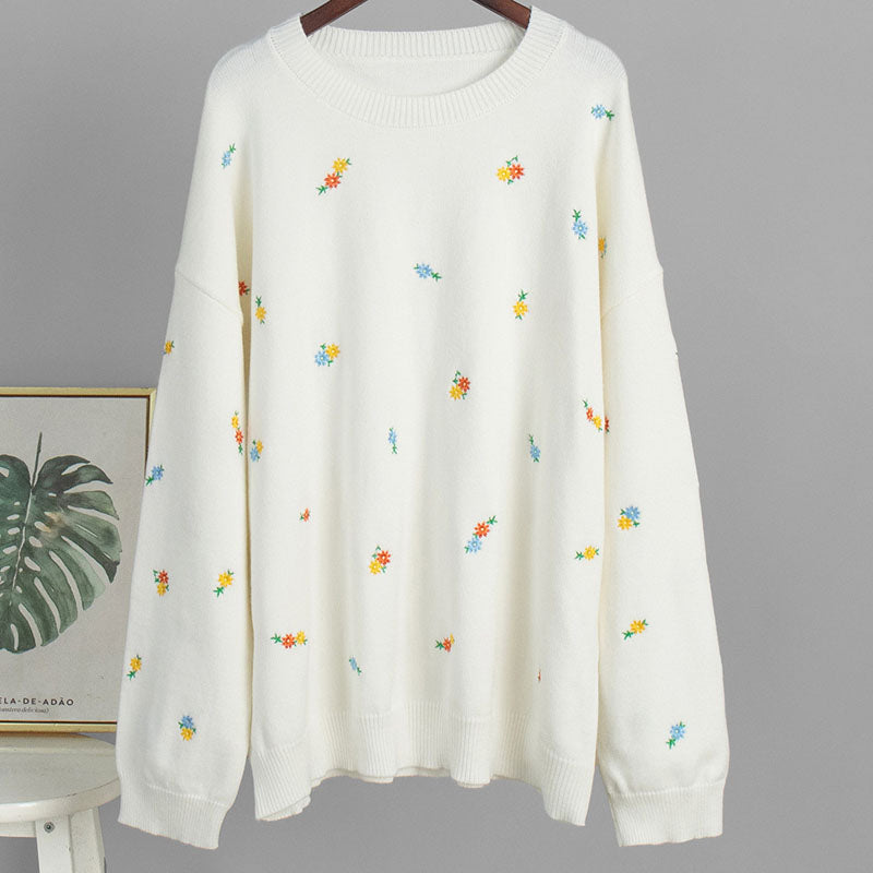 Simple Embroidered Flower Round Neck Cardigan DP25G923