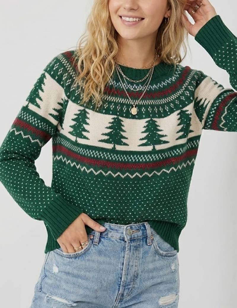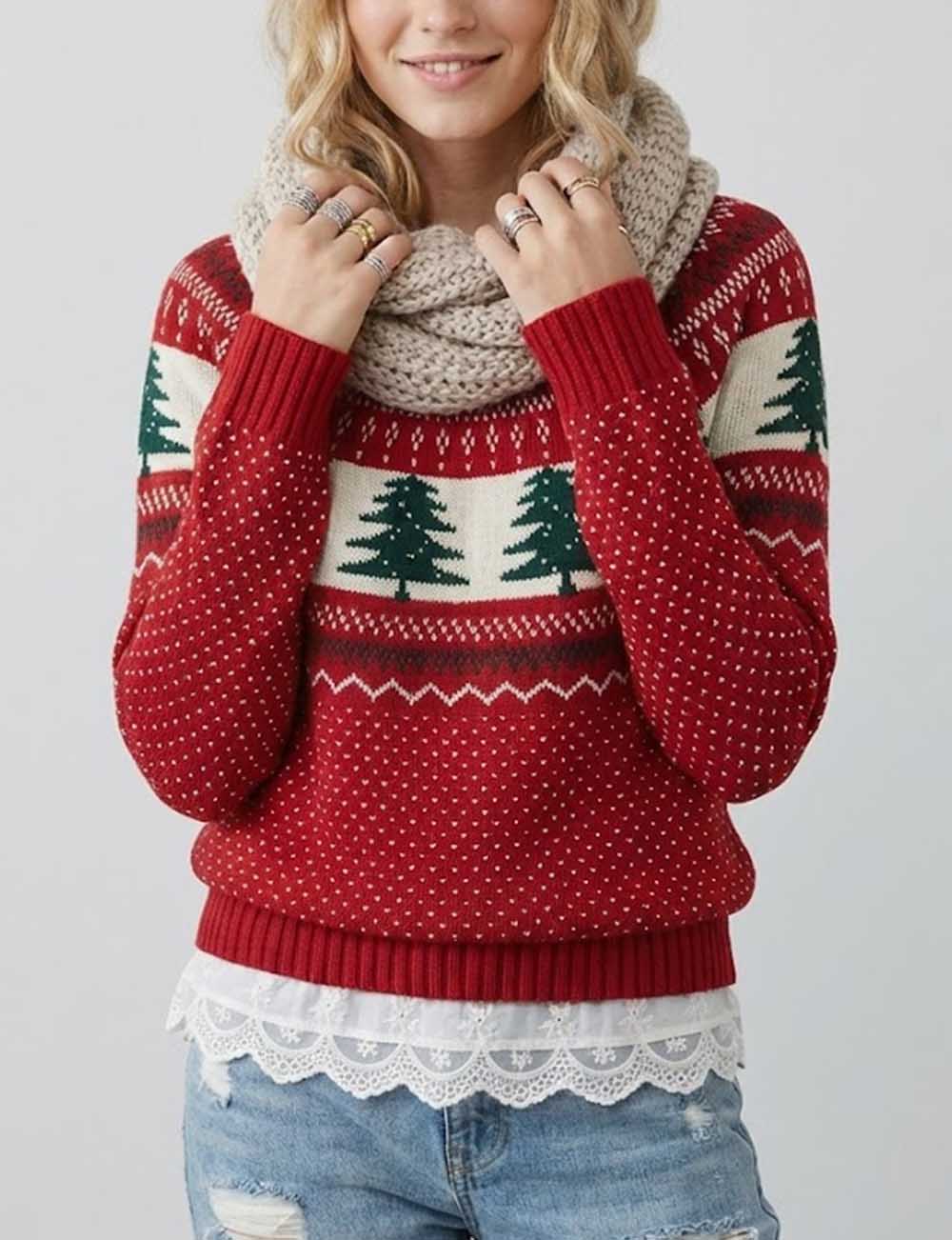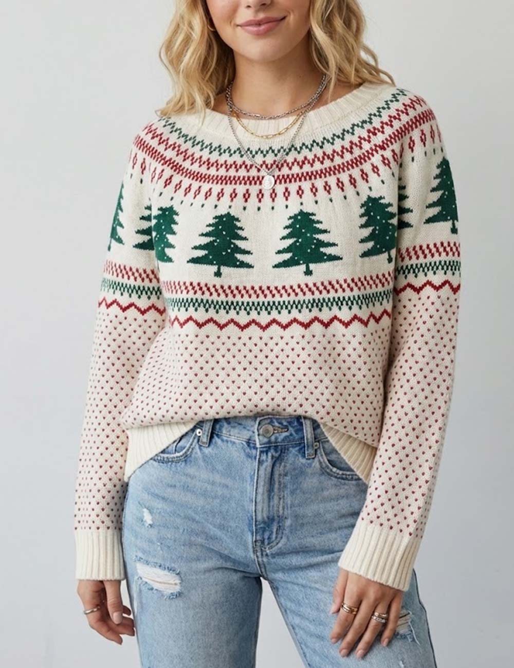 Simple Embroidery Christmas Theme Loose Knit Sweater DP25H430