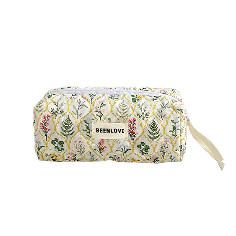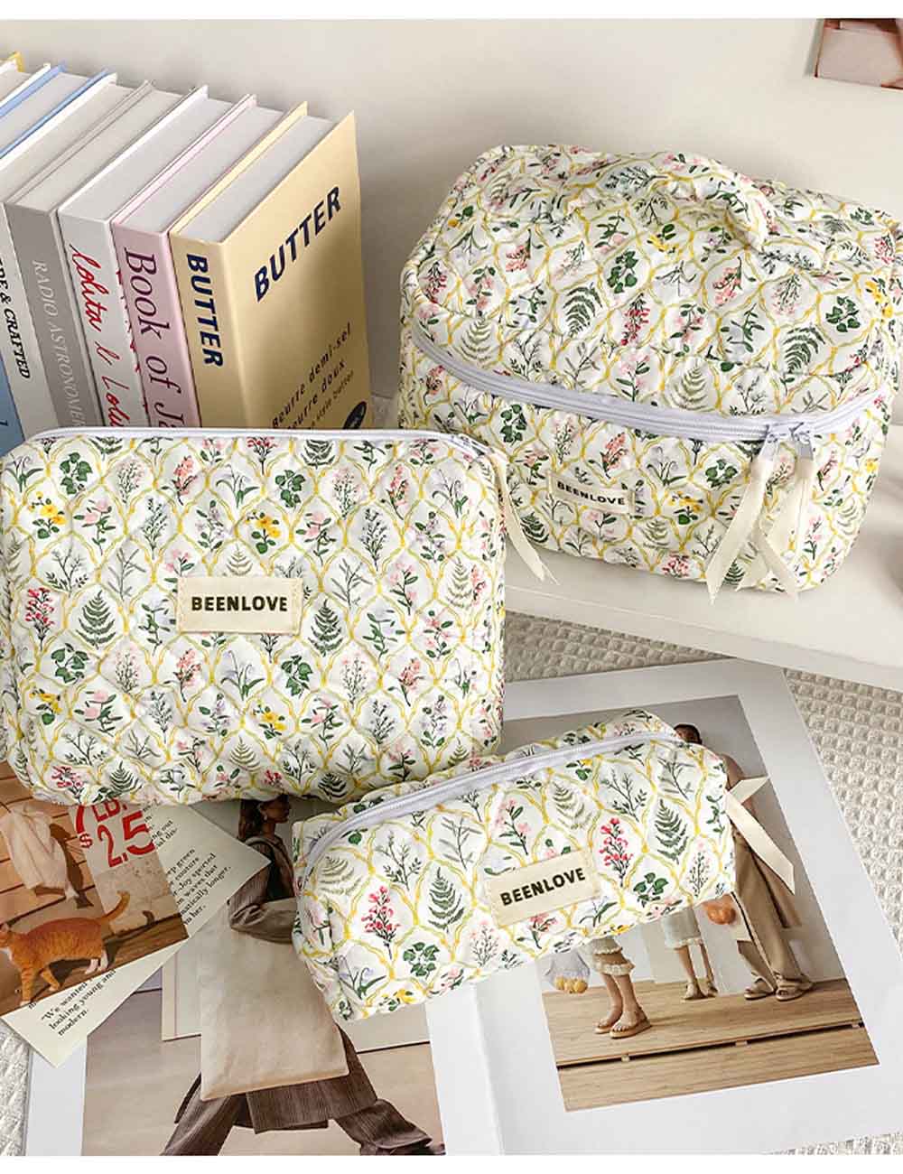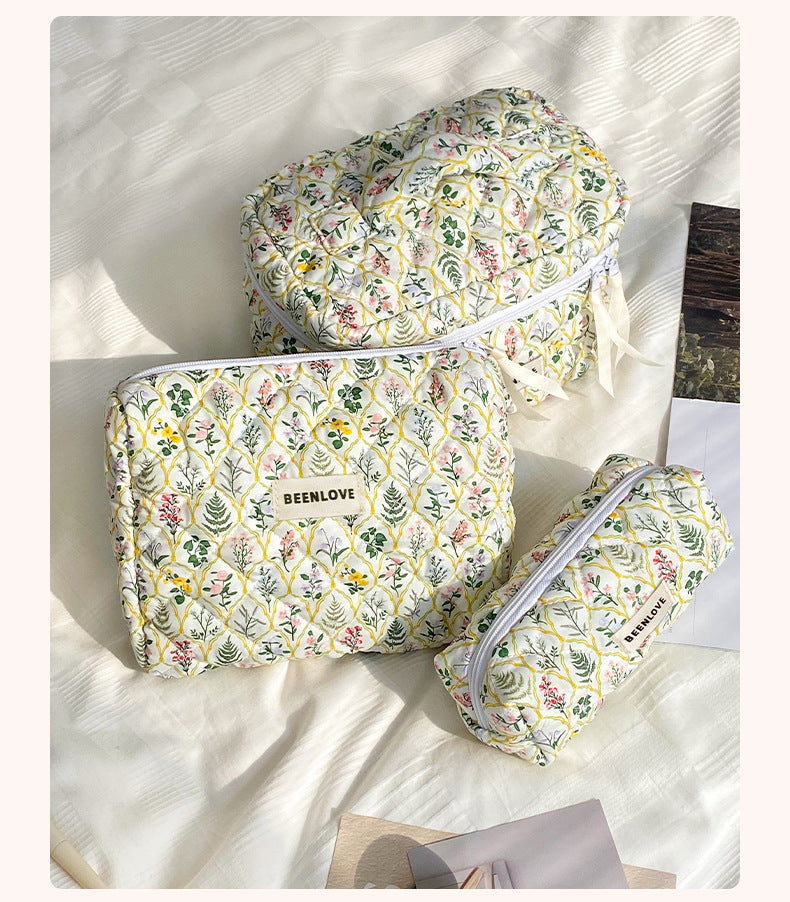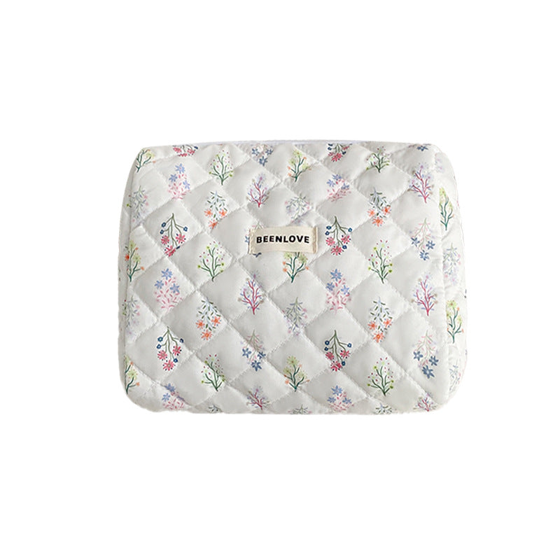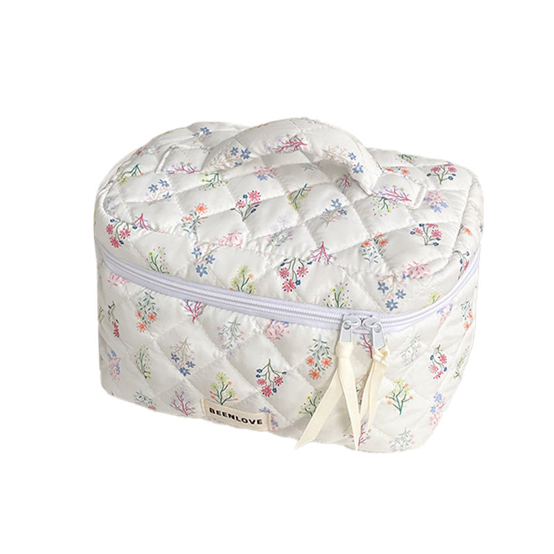 Simple Flower Print Quilted Portable Makeup Bag DP25H575