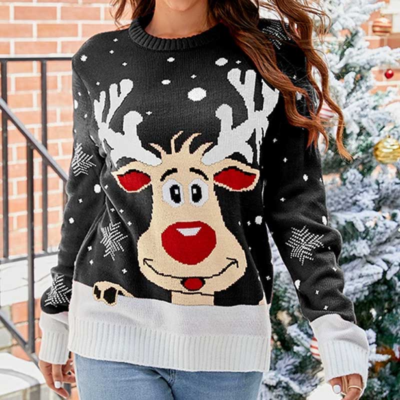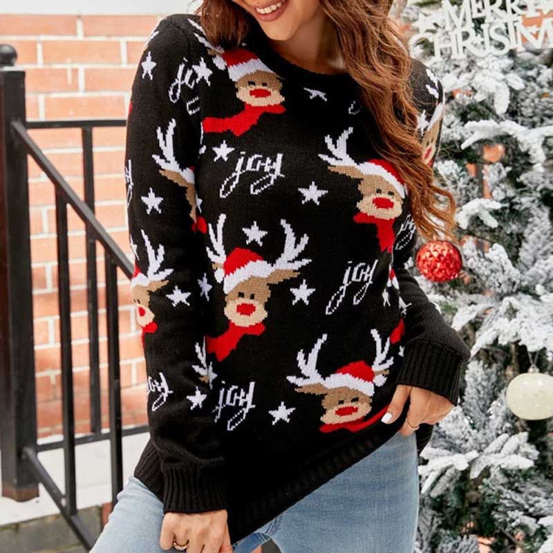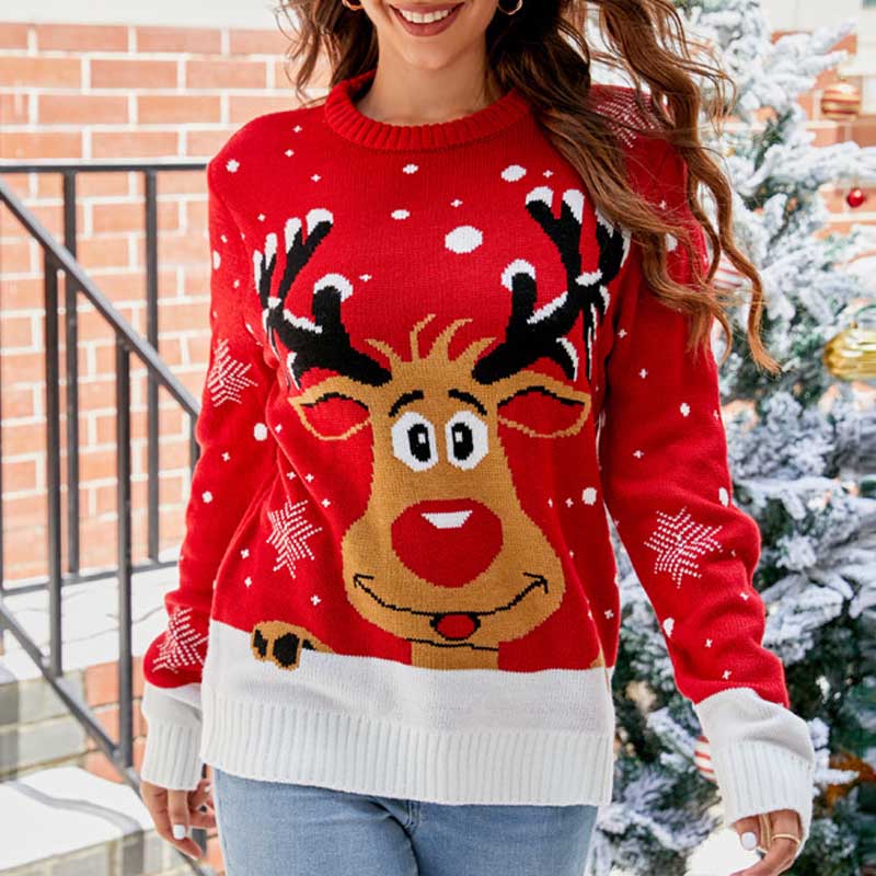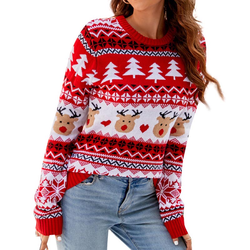 Simple Jacquard Knit Slouchy Christmas Sweater DP25H427