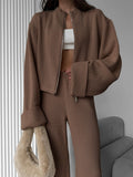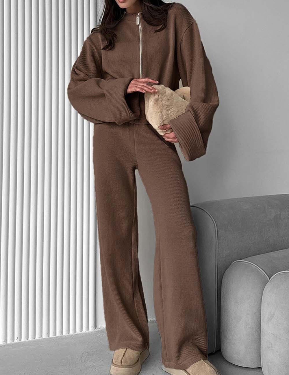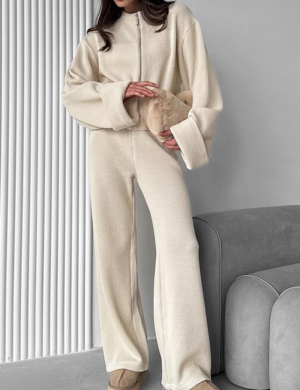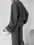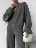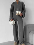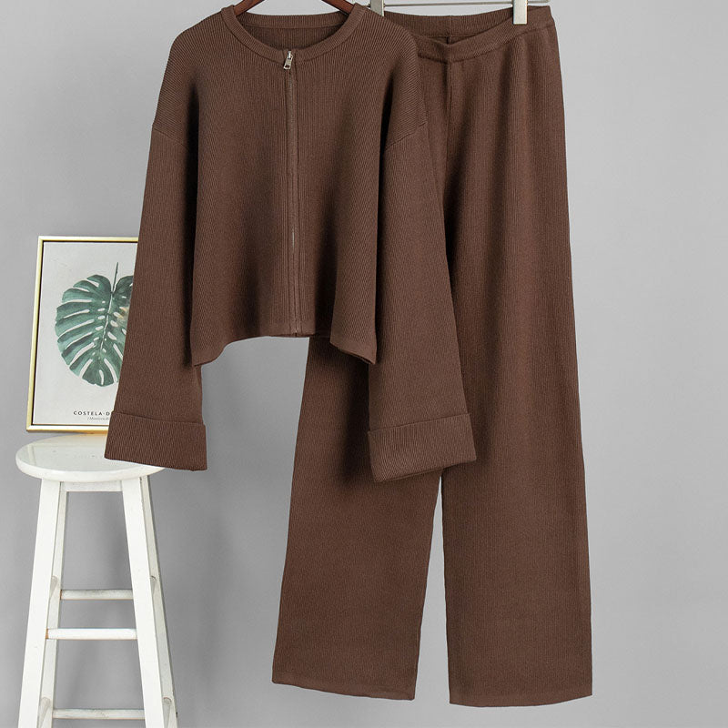 Simple Knit Zip-Up Cardigan Long Pants Set DP25H658