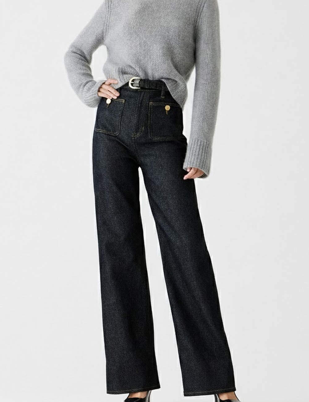 Simple Mid Waist Wide Leg Denim Pants DP25G682