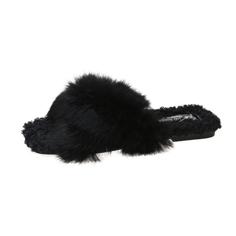 Simple Open Toe Cross Faux Fur Warm Slippers DP25G468