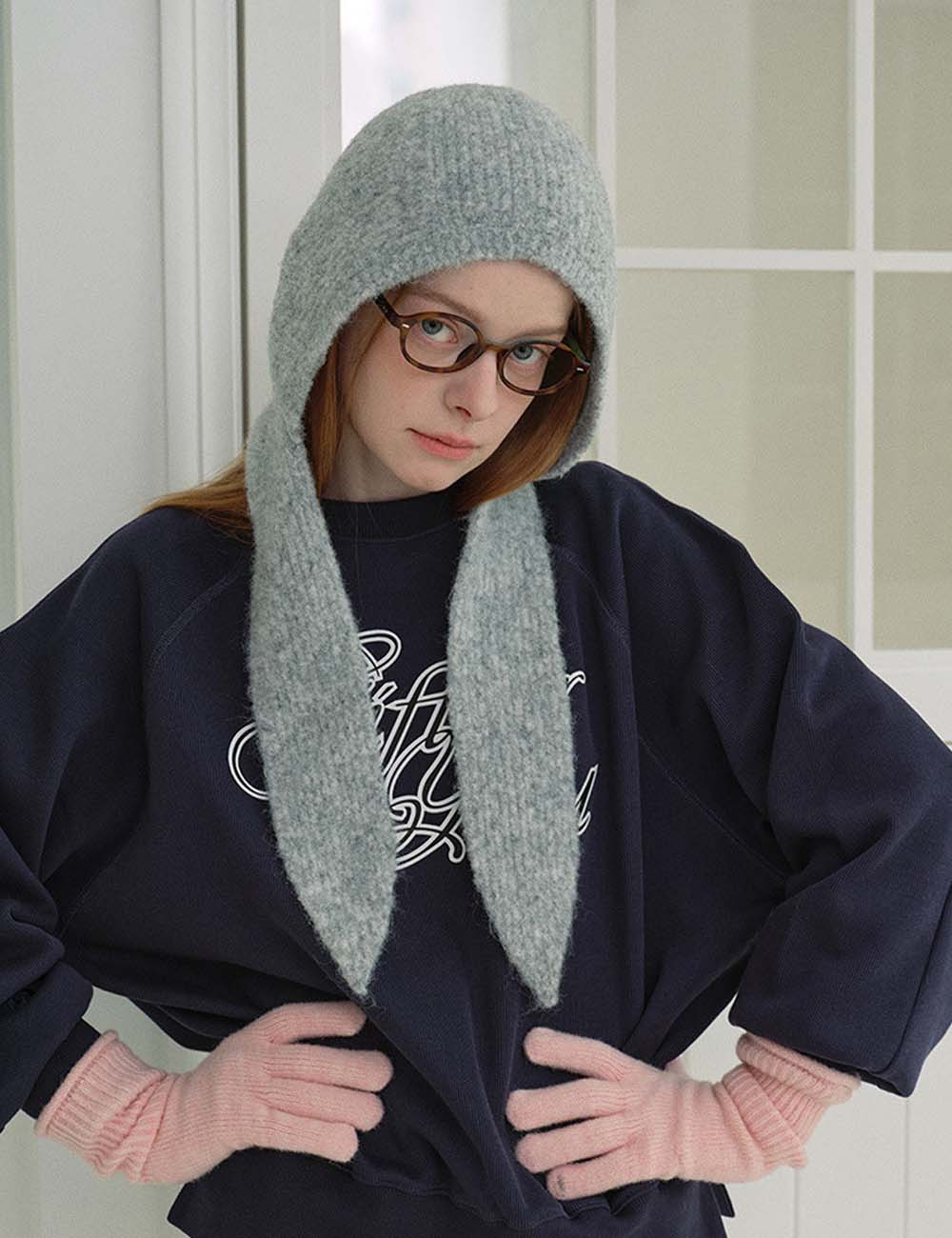 Simple Ribbed Knit Hat Solid Color Hooded Scarf DP25H726
