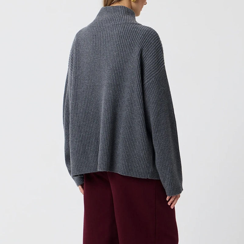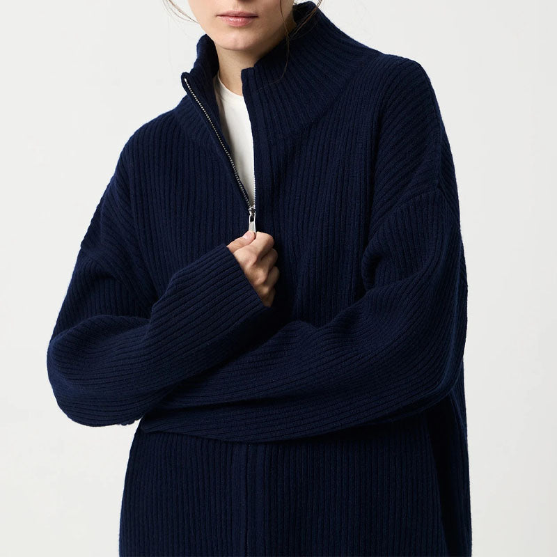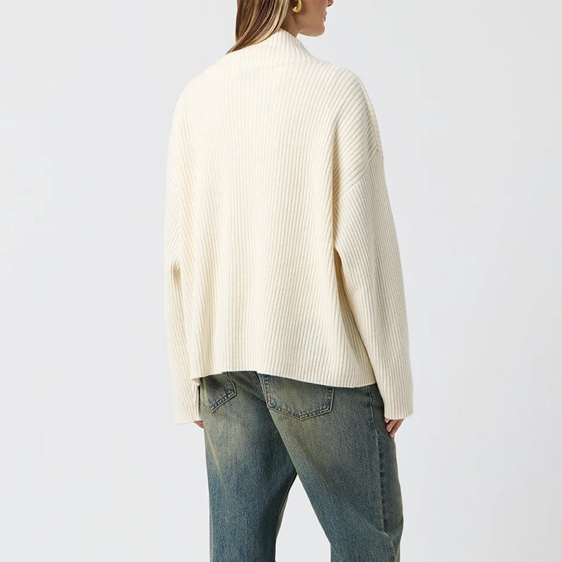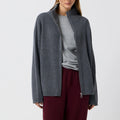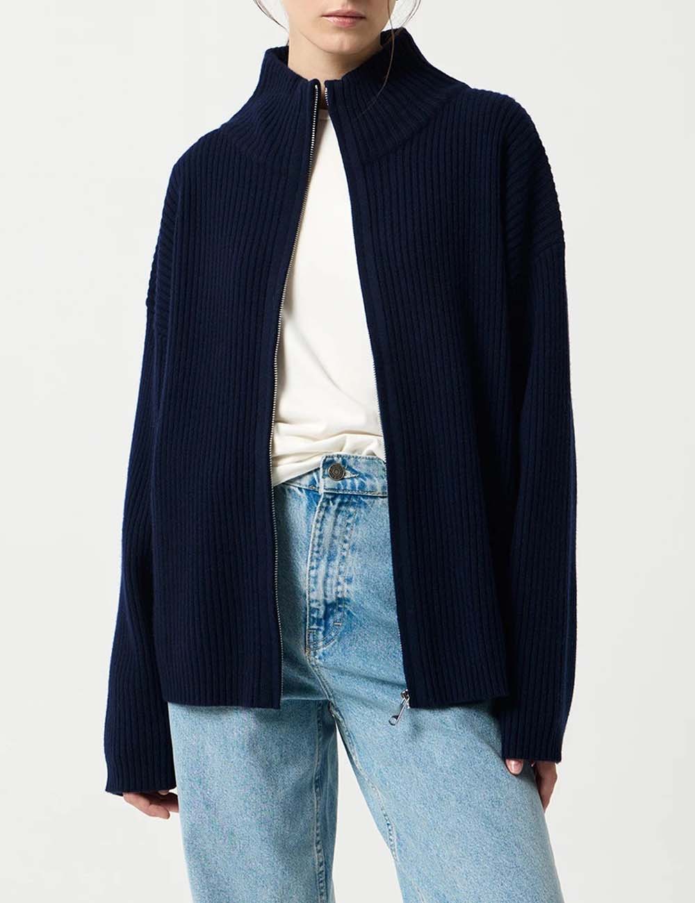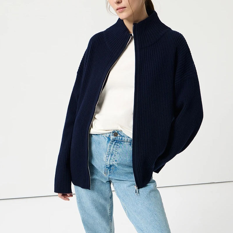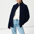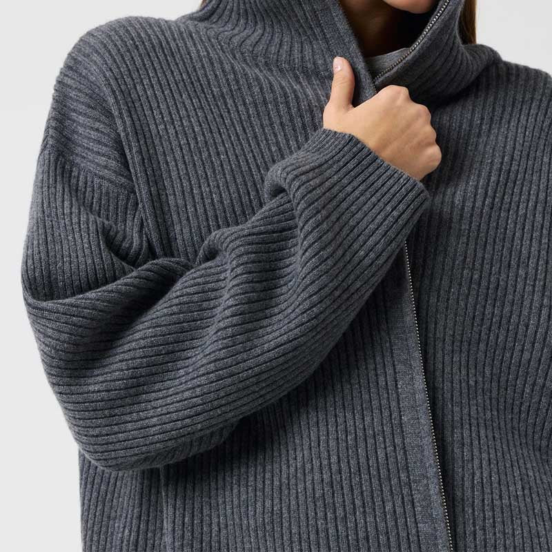 Simple Ribbed Knit Mock Neck Zip Up Cardigan DP25G961