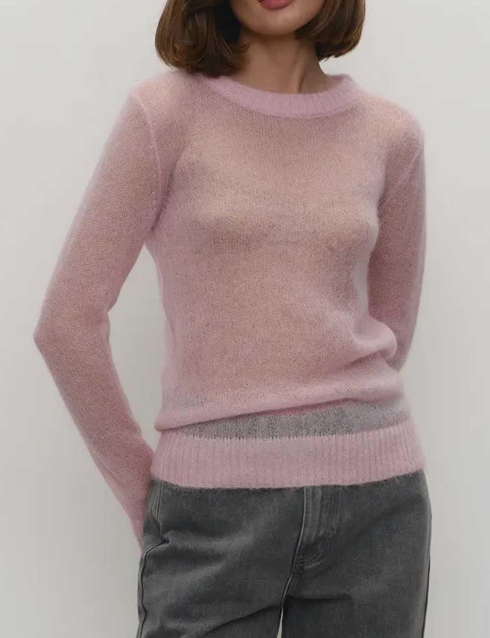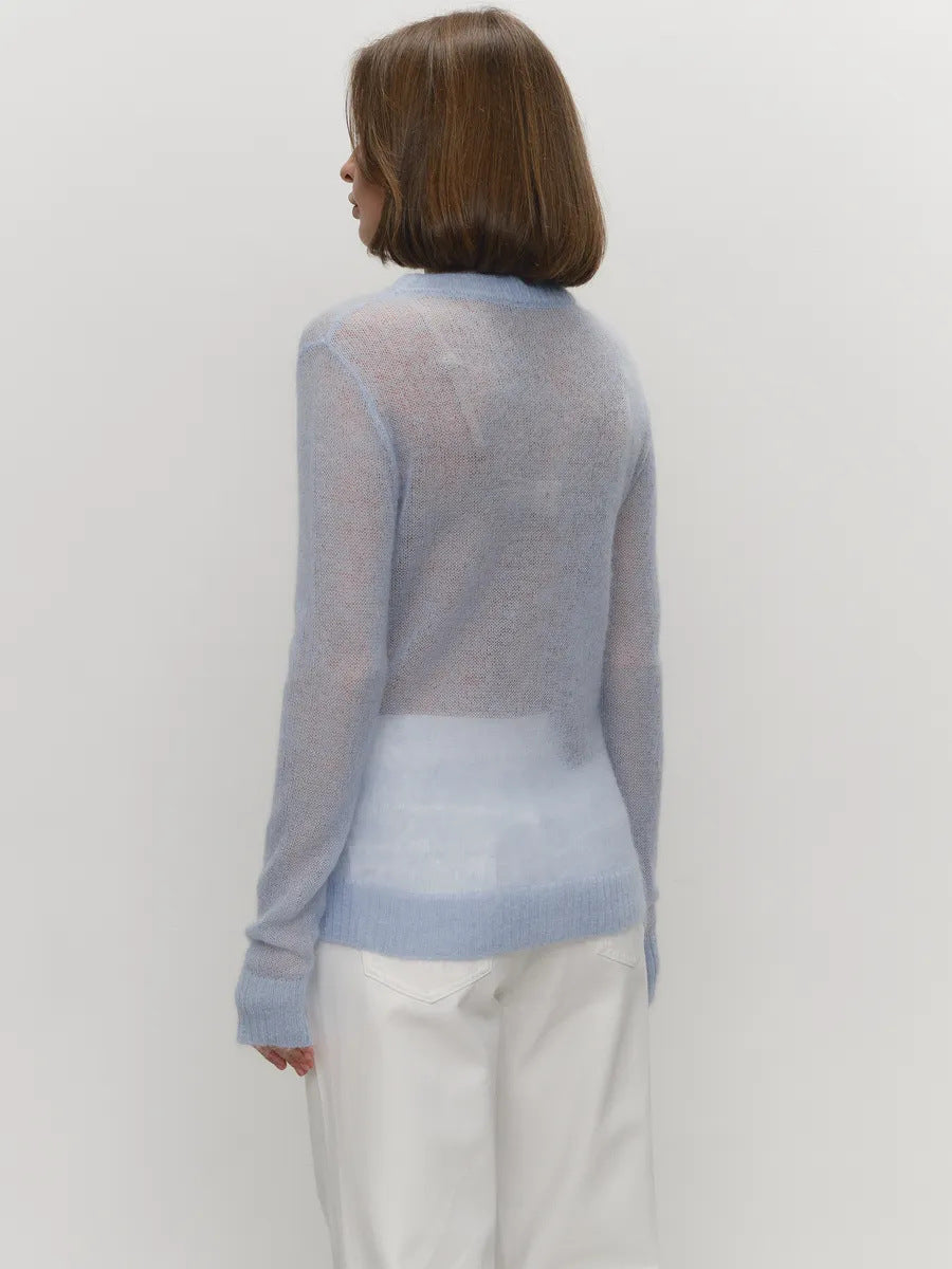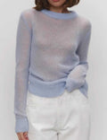 Simple Sheer Round Neck Long Sleeve Knit Top DP25E431