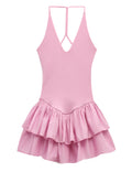 Simple Solid Color Halter Ruffle Dress DP25C994