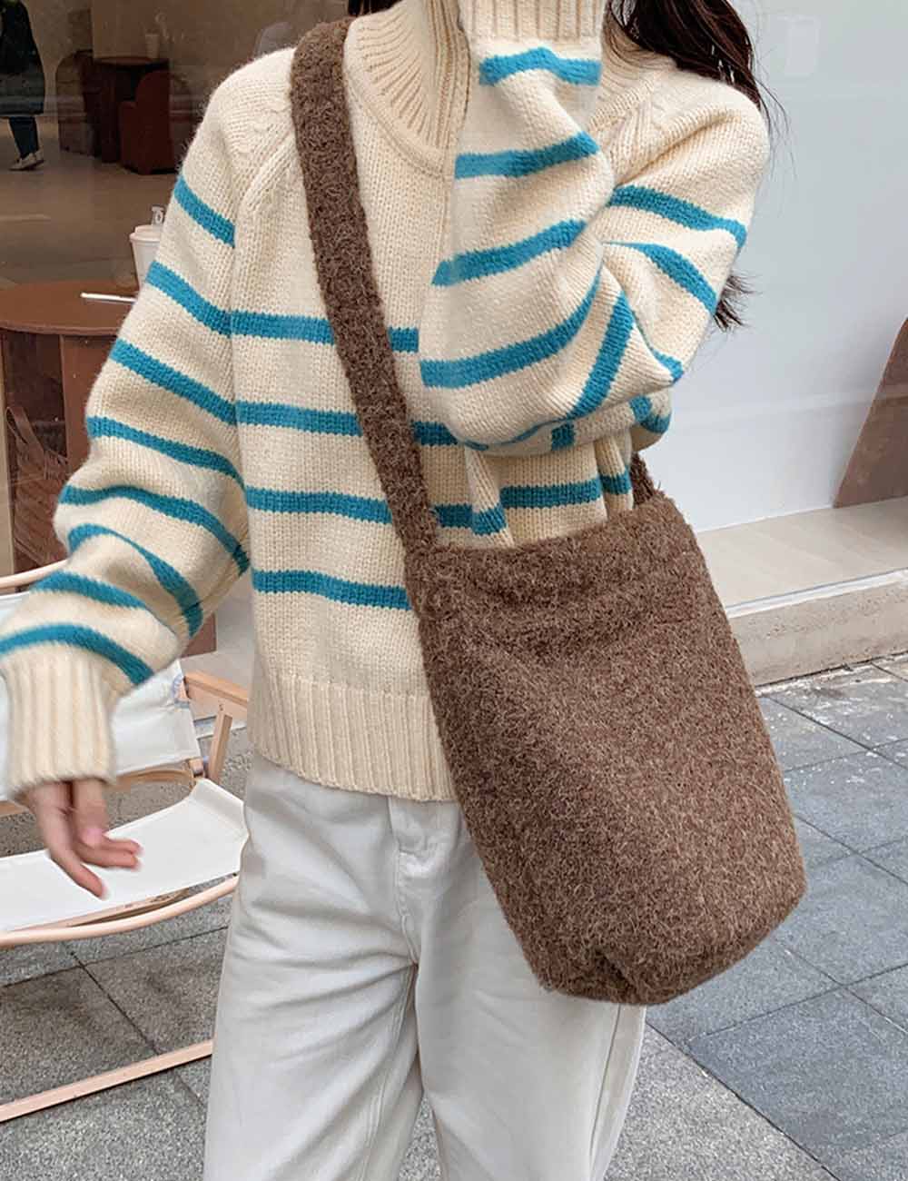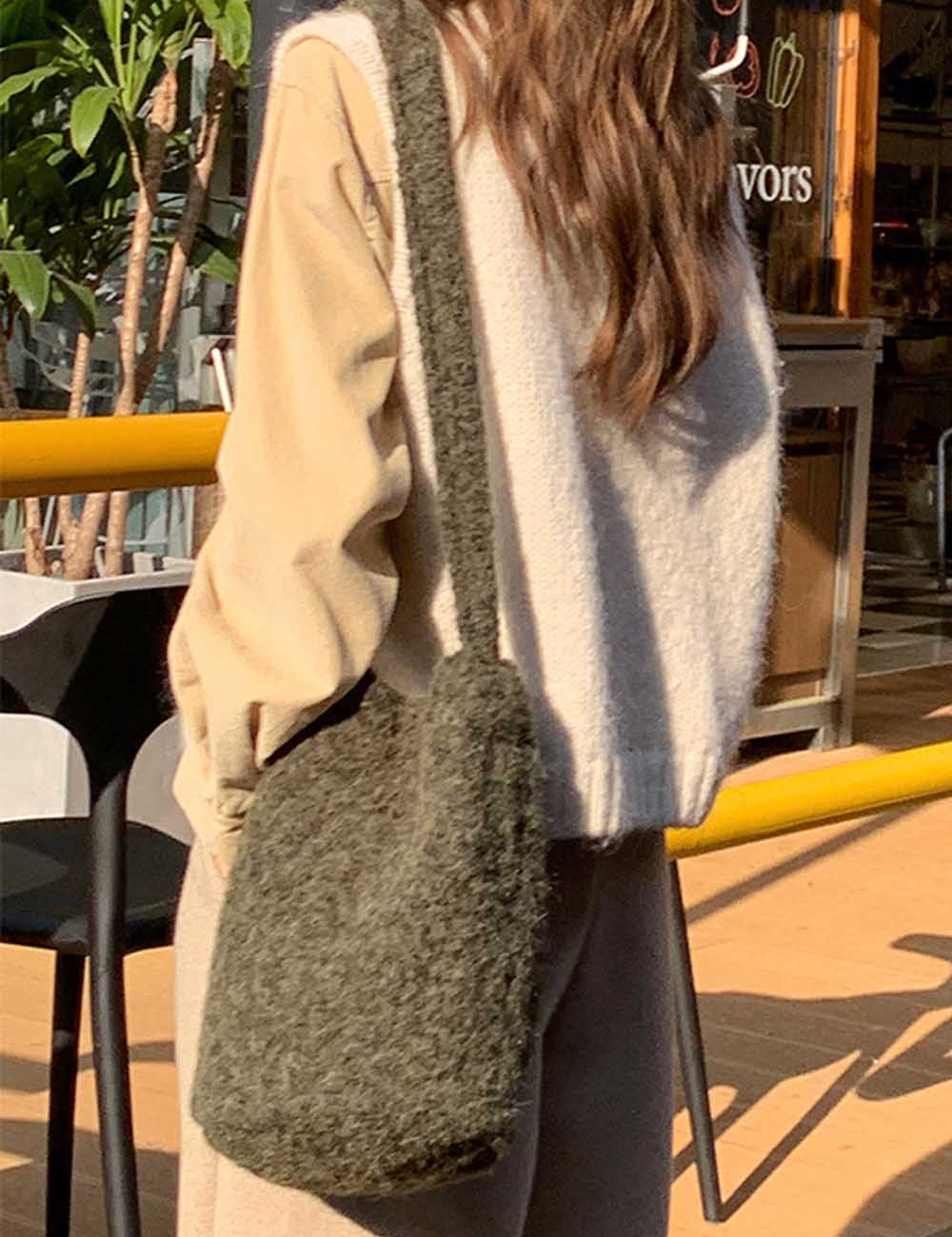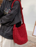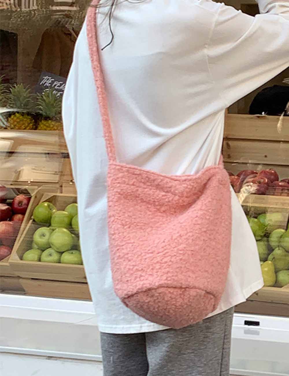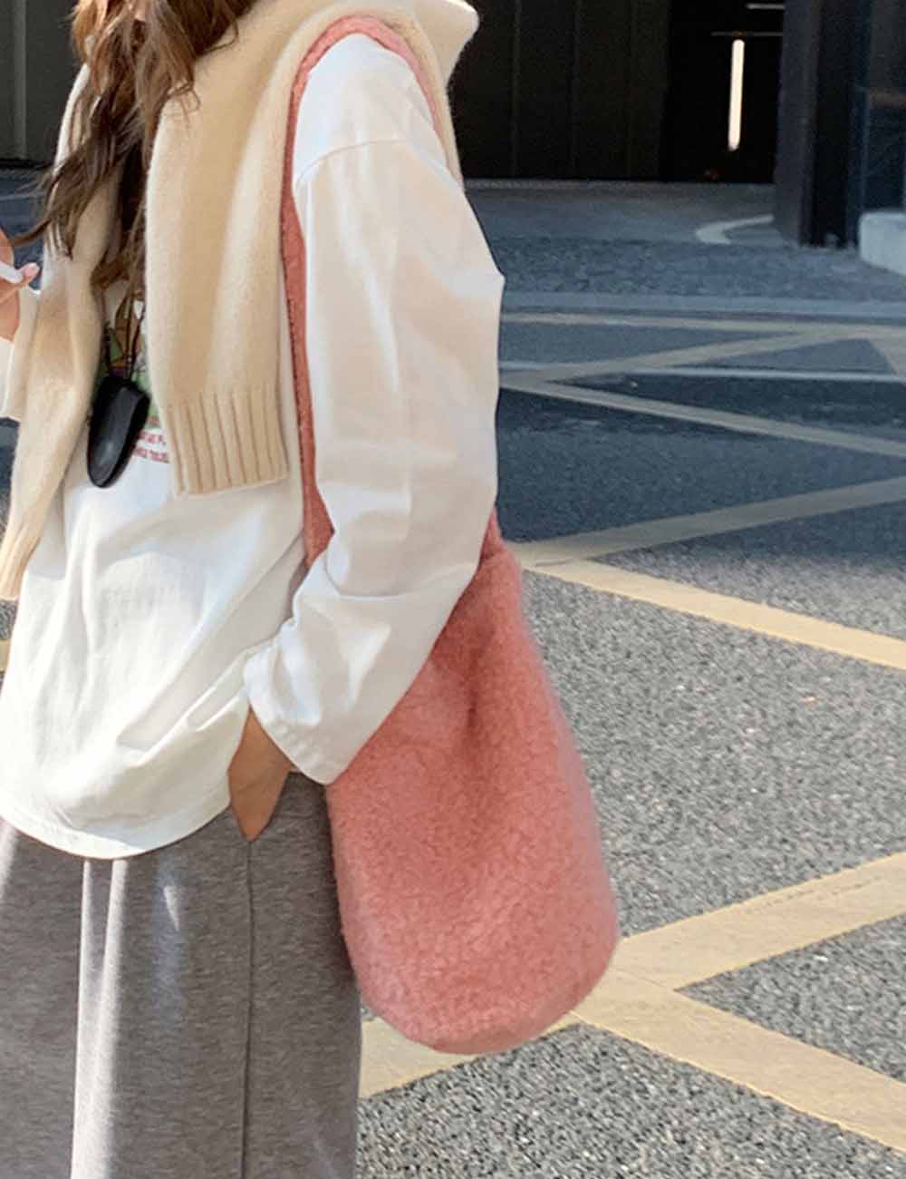 Simple Solid Color Plush Shoulder Bucket Bag DP25H591