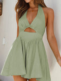 Simple Solid Color V-Neck Halter Dress DP25D579