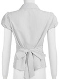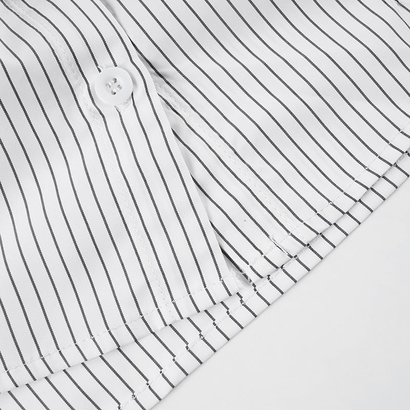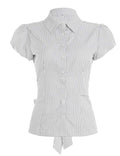 Simple Striped Button Down Tie Waist Shirt DP25F525