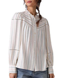 Simple Striped Long Sleeve Ruffle Neck Top DP25D879
