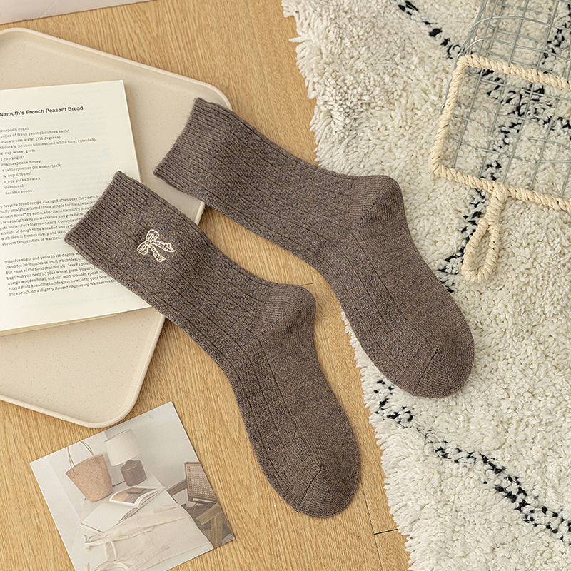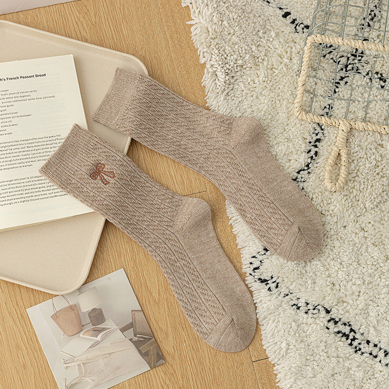 Simple Thicken Warm Bow Embroidery Crew Socks DP25H529