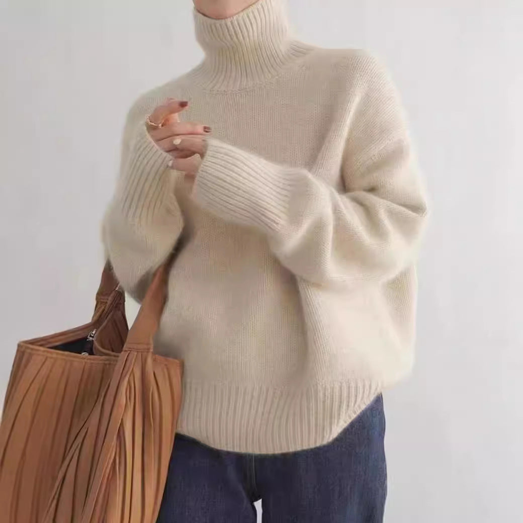 Simple Turtleneck Solid Color Loose Knit Sweater DP25H643