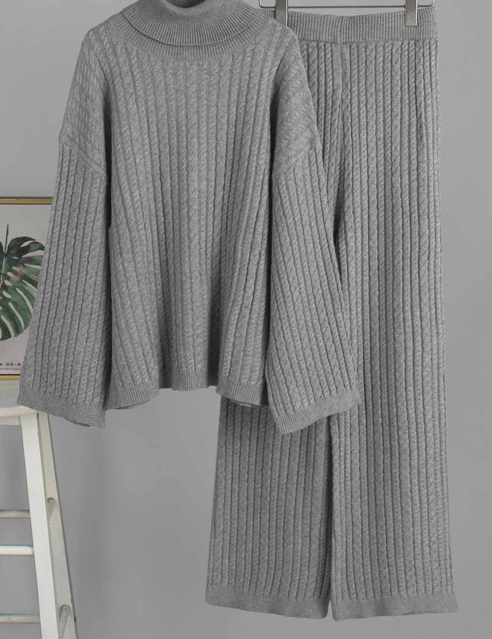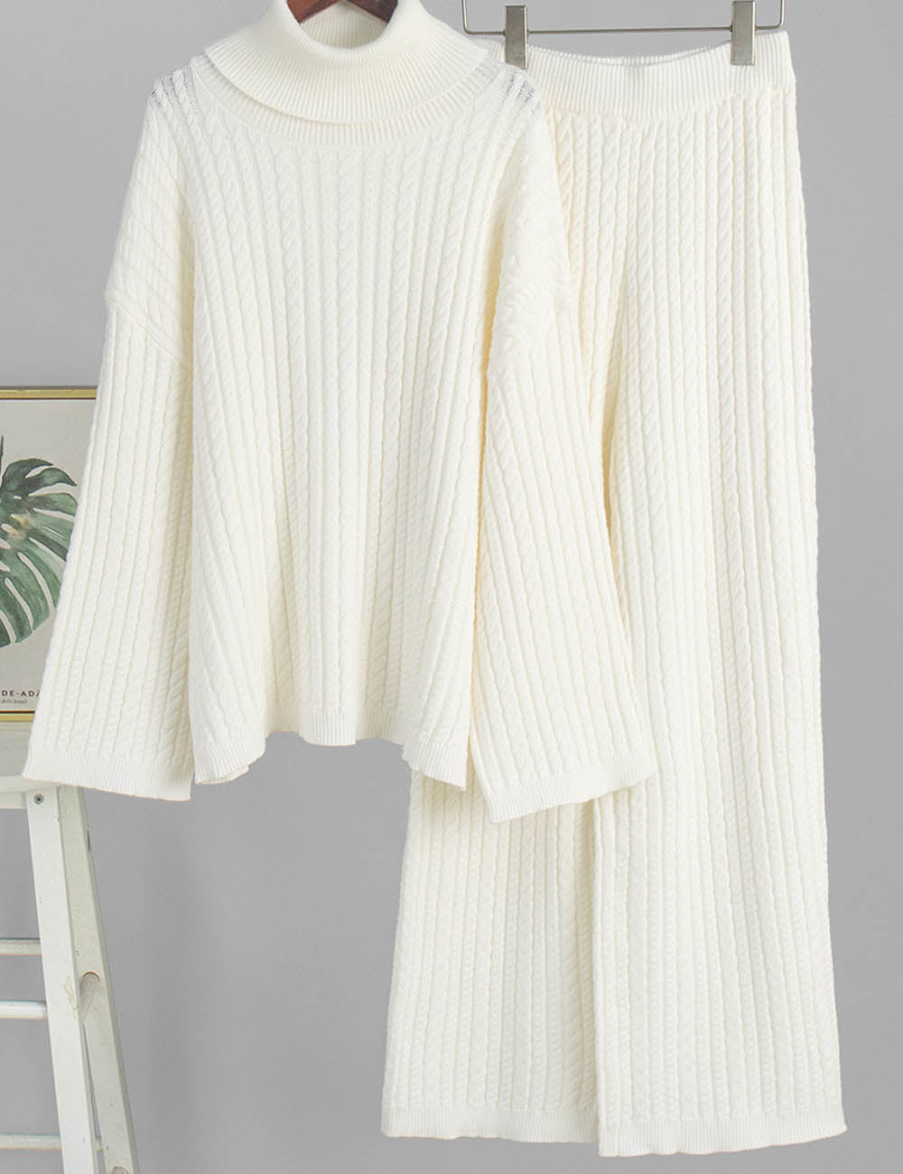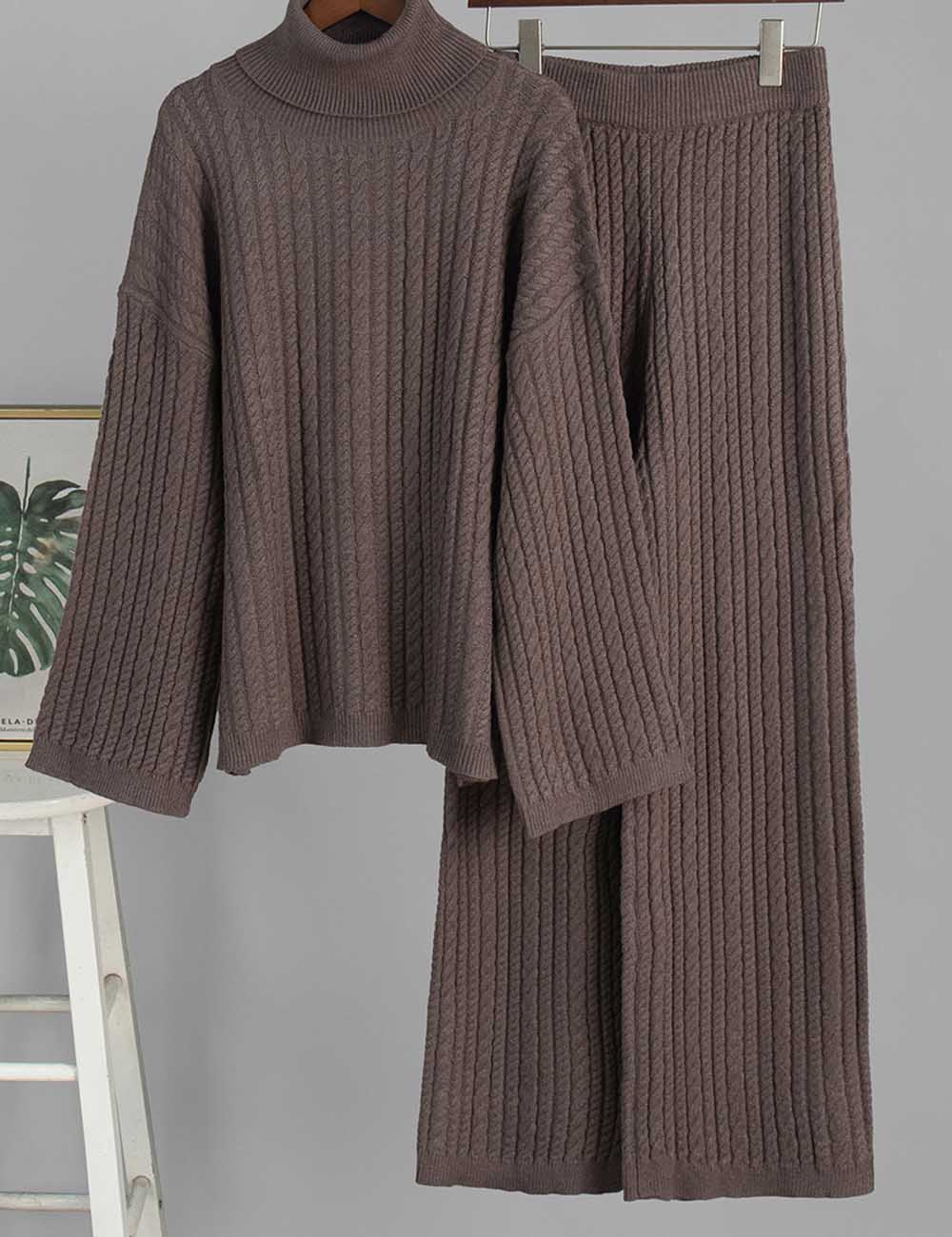 Soft Cable Knit Turtleneck Sweater Long Pants Set DP25H660