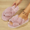 Soft Fuzzy Cross Band Open Toe Slippers DP25F912