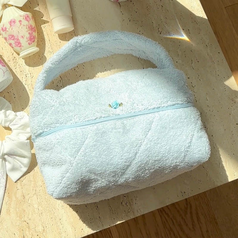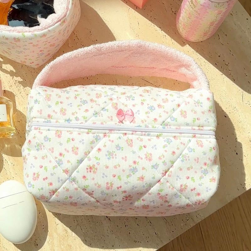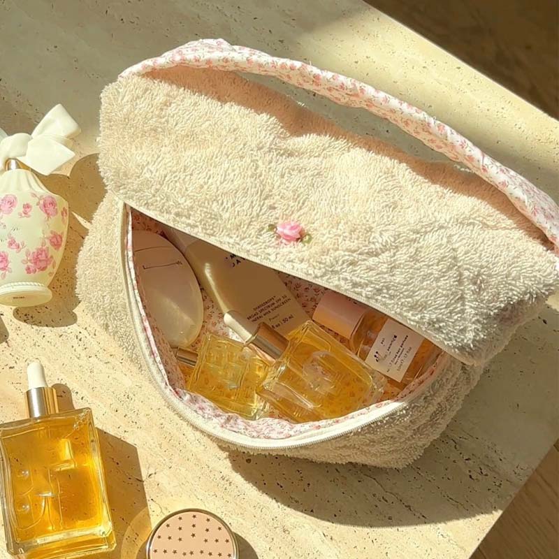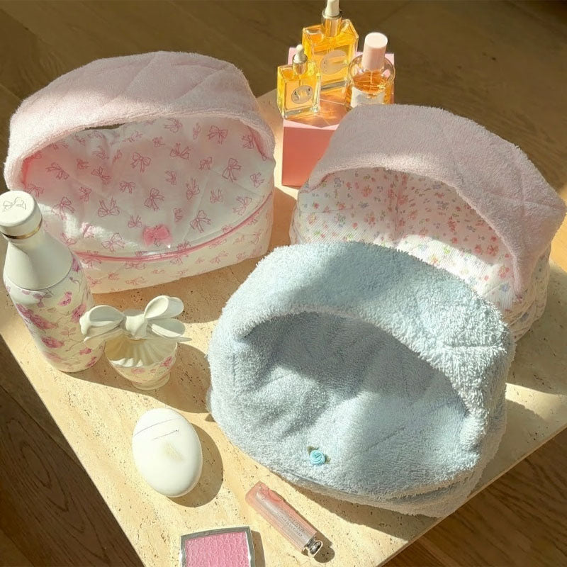 Soft Plush Cute Bow Print Cosmetic Bag DP25H567