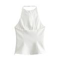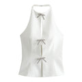 Solid Color Bow Front Backless Halter Top DP25D424