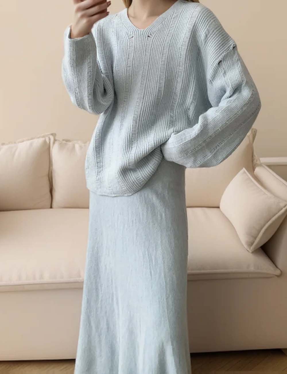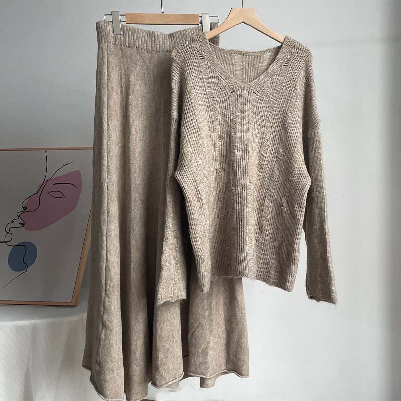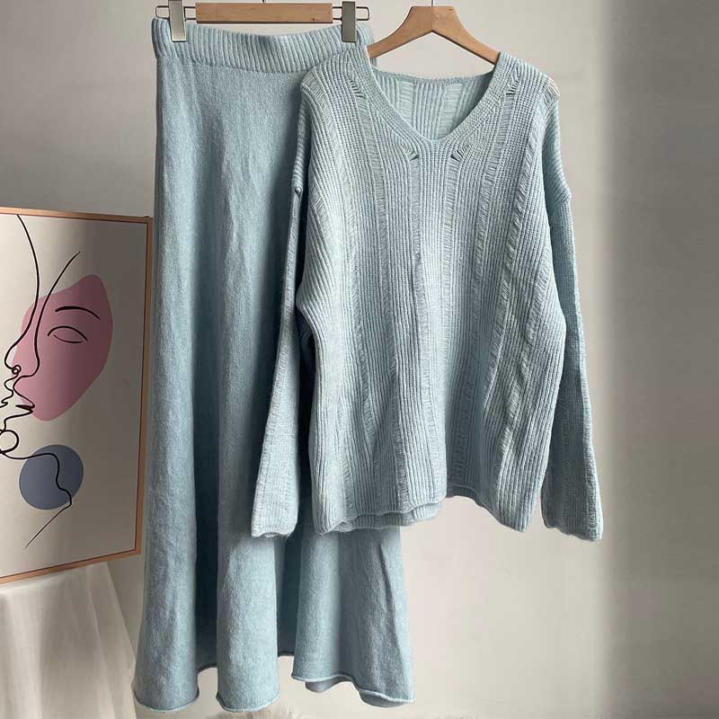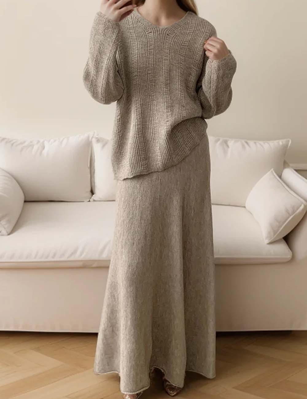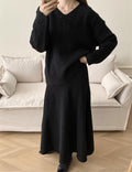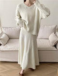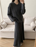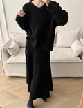 Solid Color Loose Knit Sweater Maxi Skirt Set DP25G549
