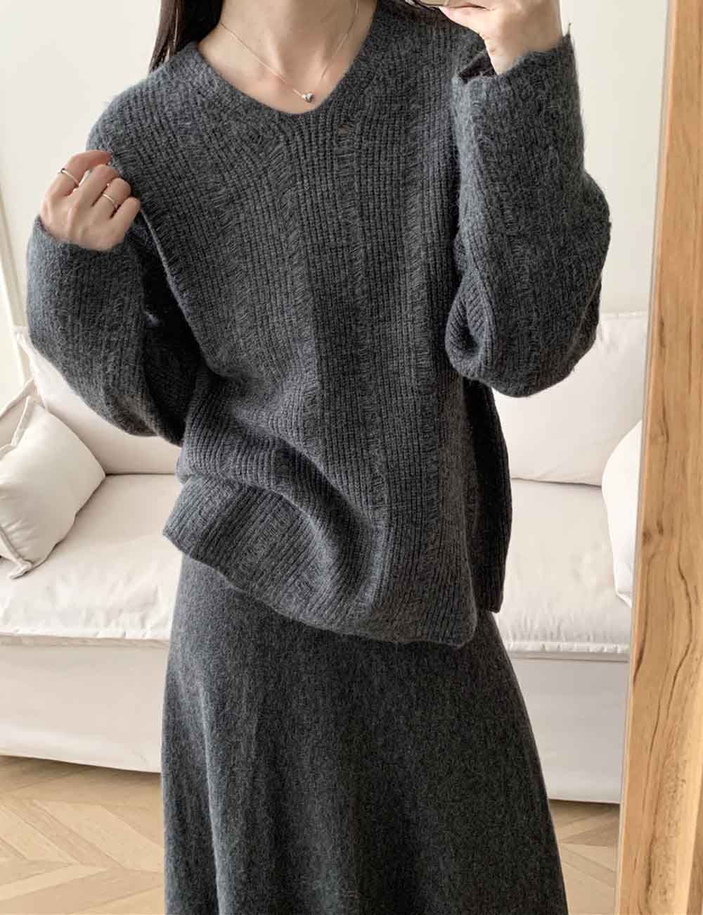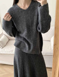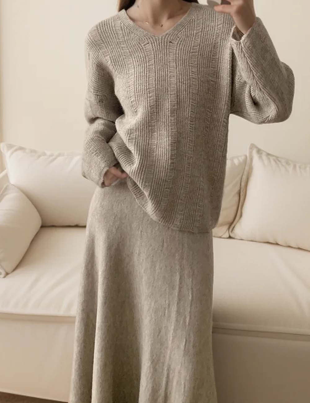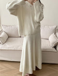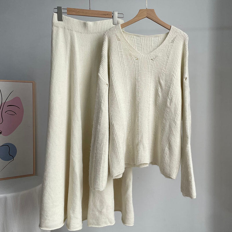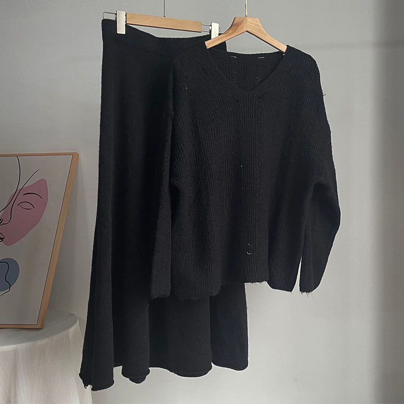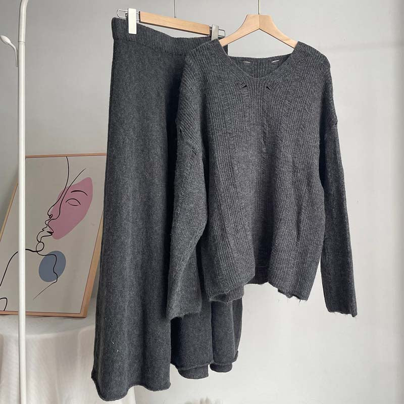 Solid Color Loose Knit Sweater Maxi Skirt Set DP25G549