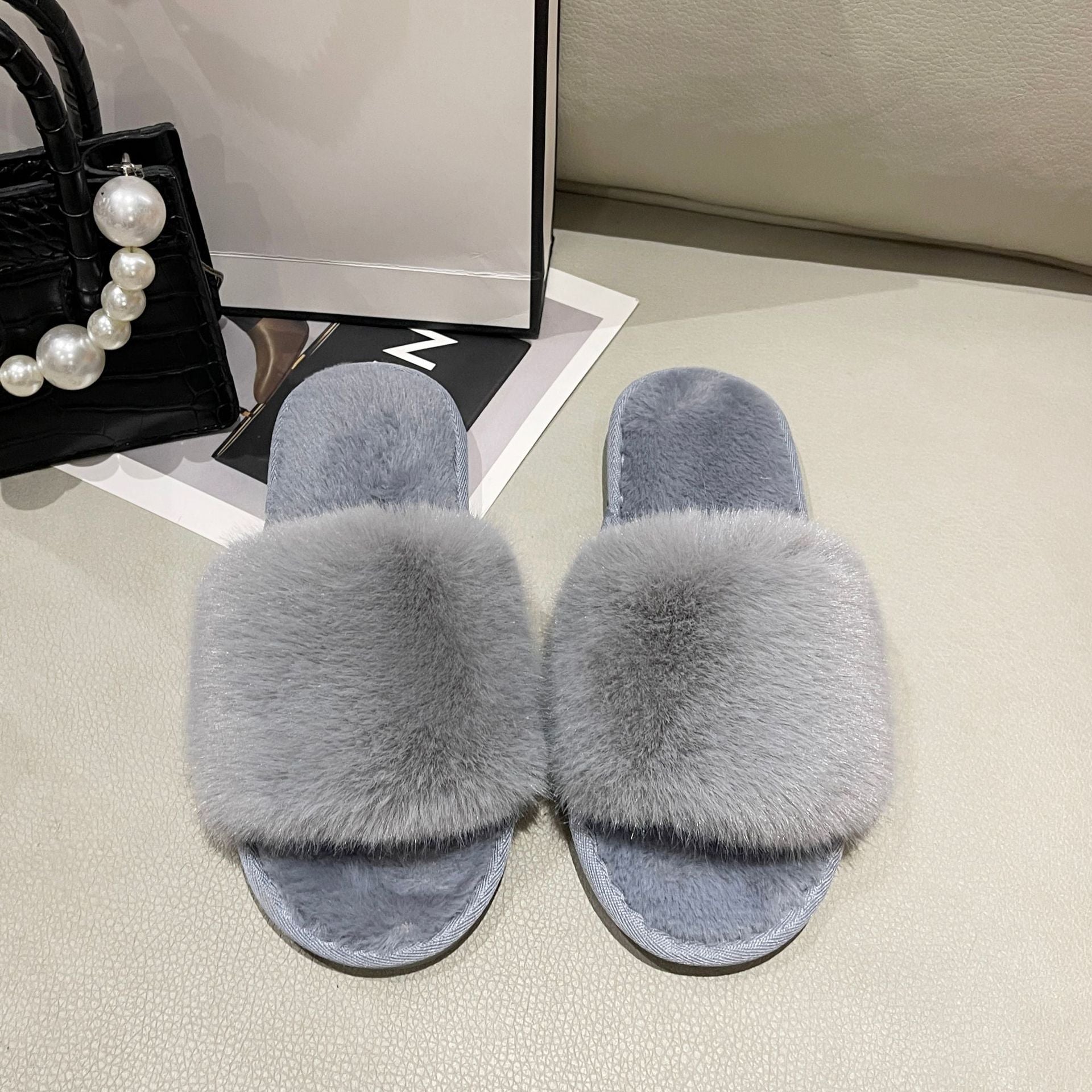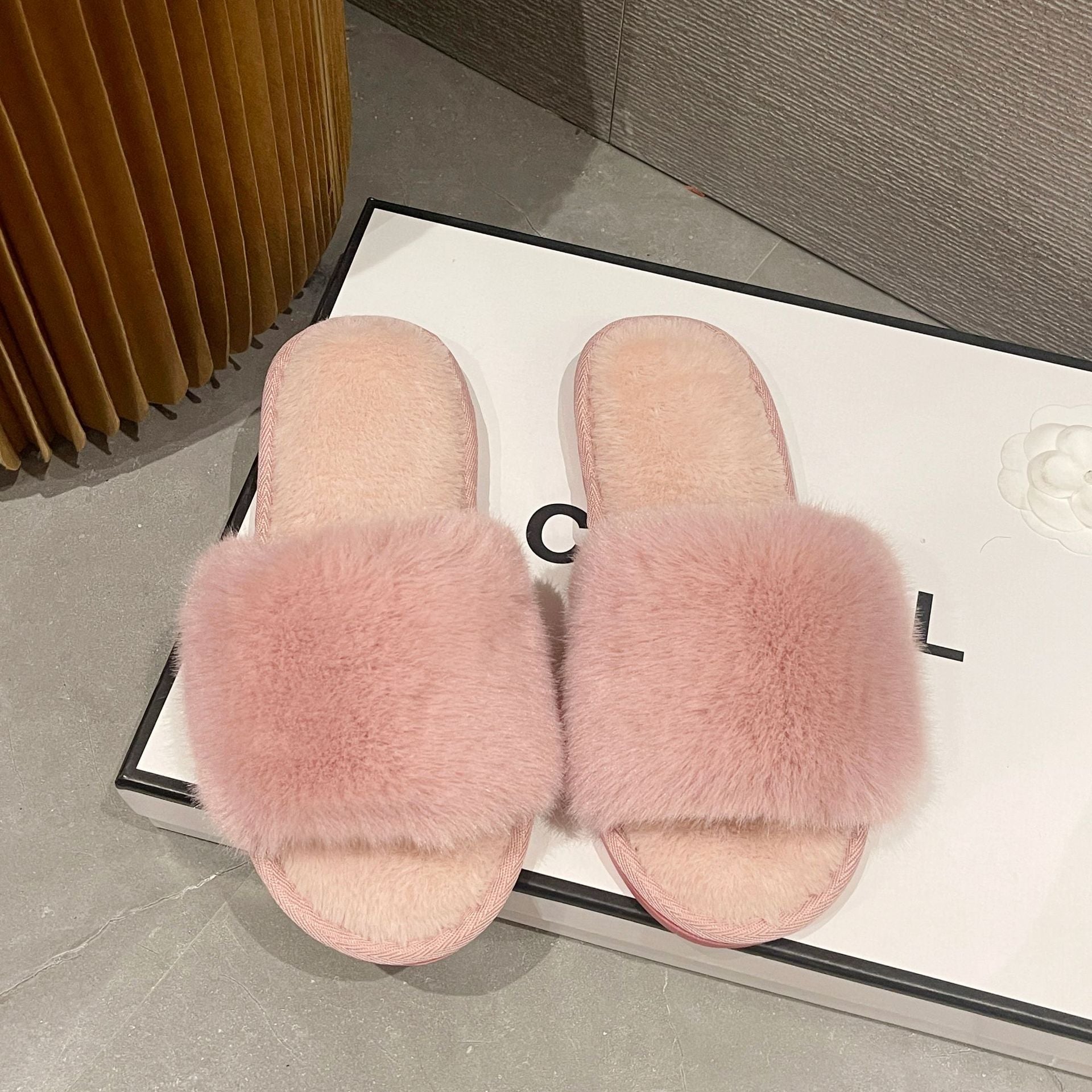 Solid Color Plush Open-Toe Slippers DP25G465