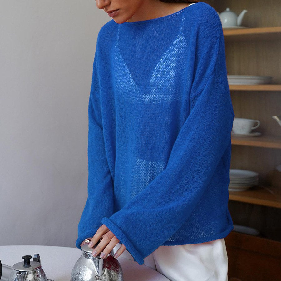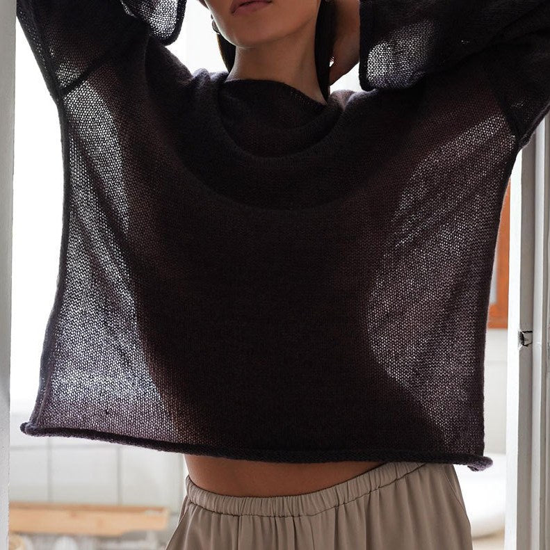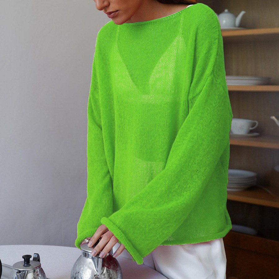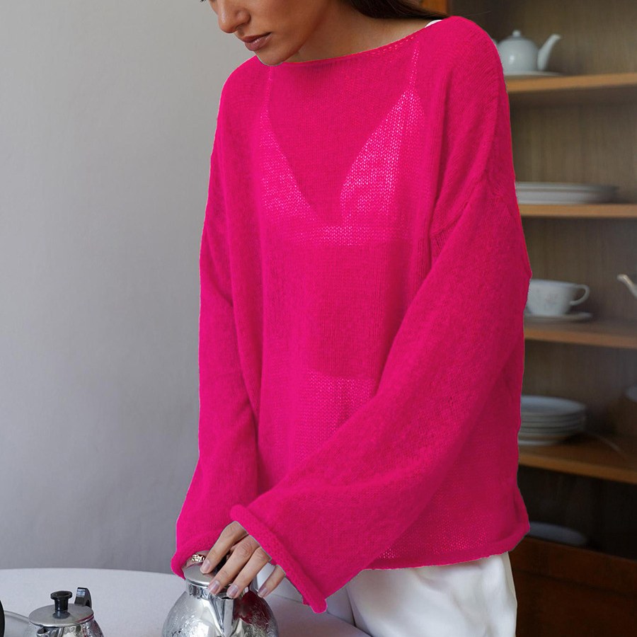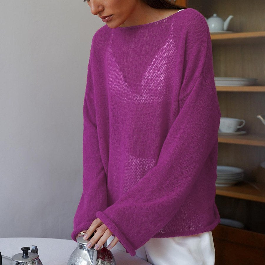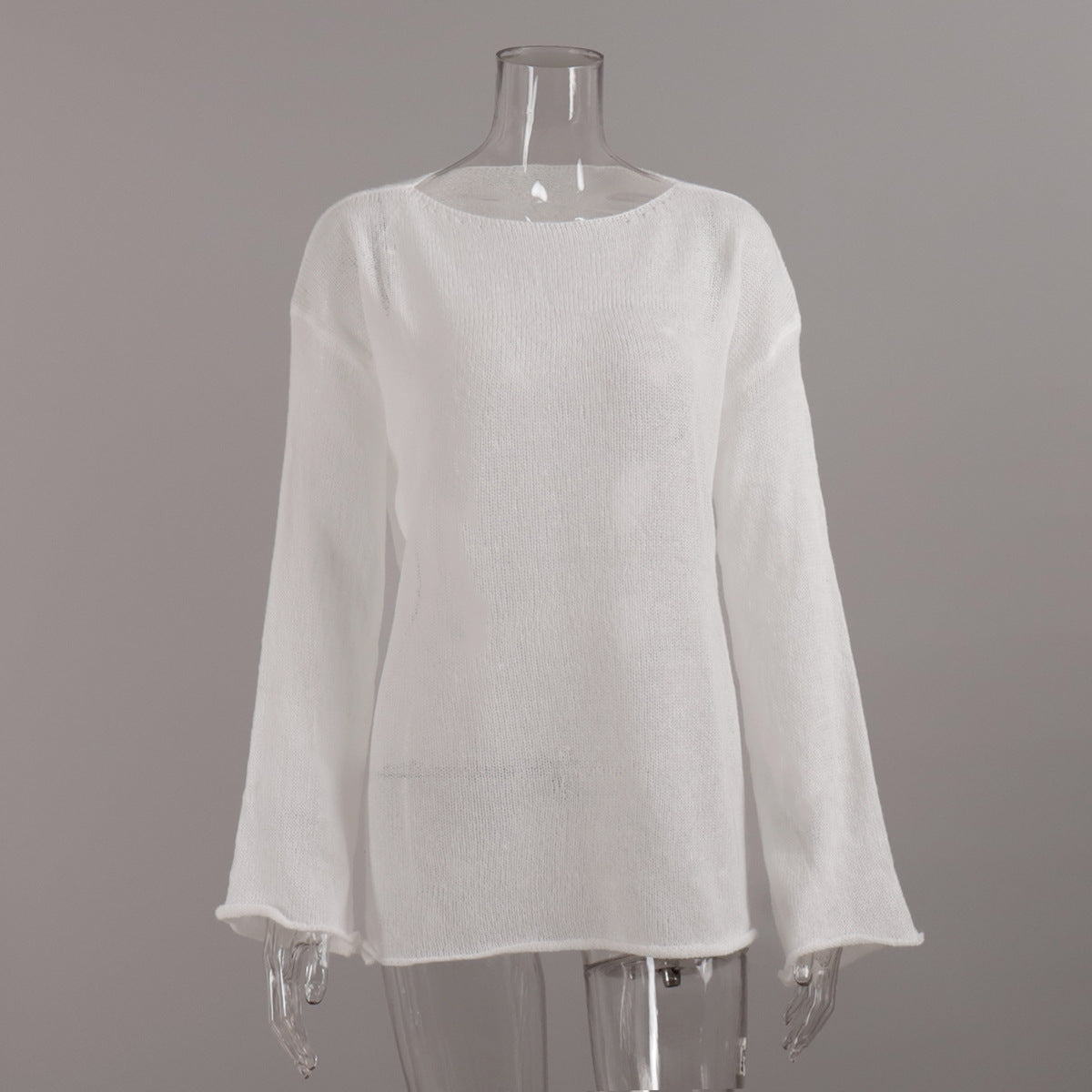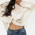 Solid Color See Through Flare Sleeves Knit Top DP25A822