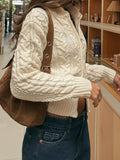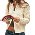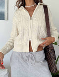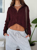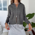 Solid Color Slouchy Zipper Cable Knit Cardigan DP25G966