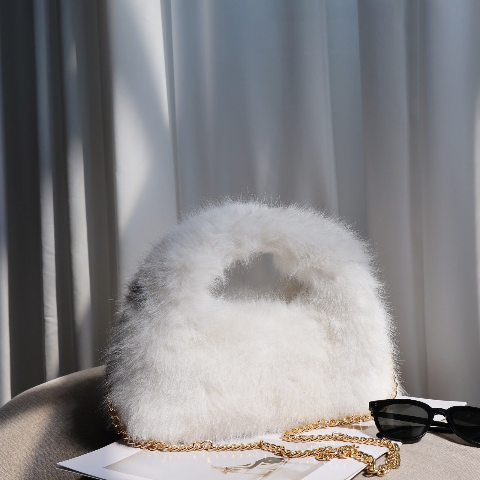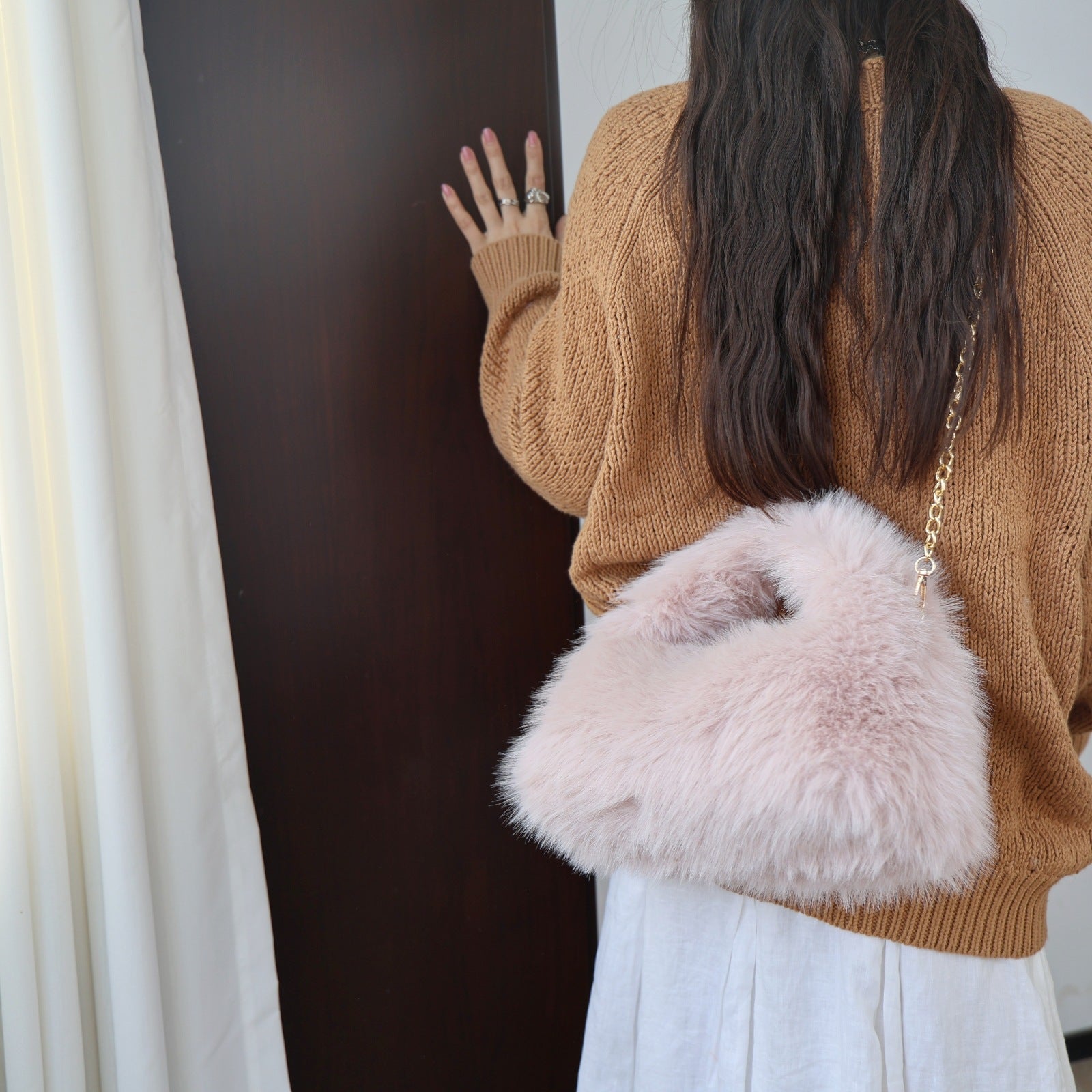 Solid Color Soft Fluffy Fur Tote Handbag DP25H580