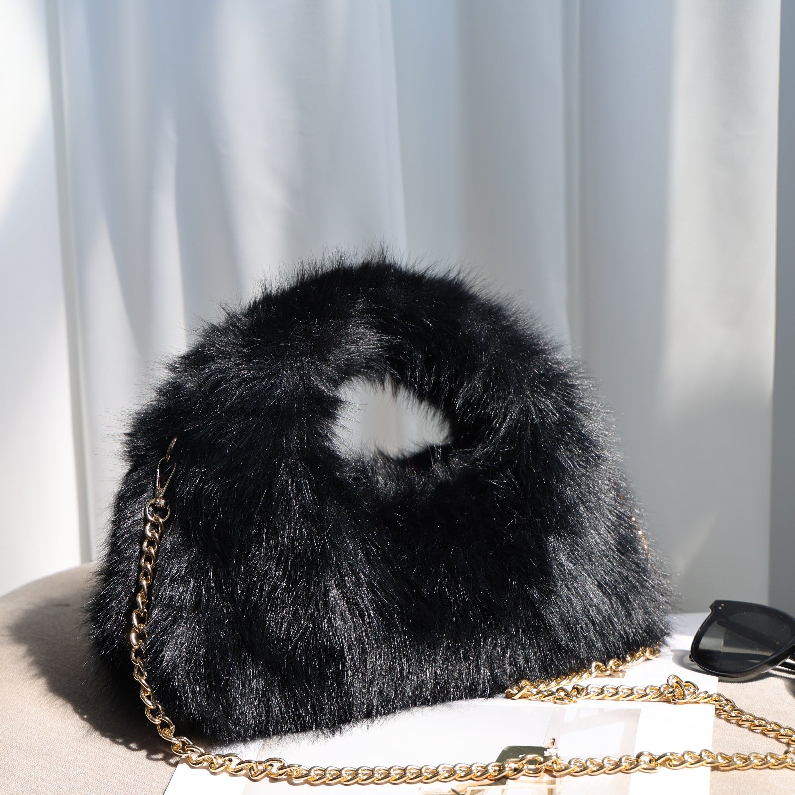 Solid Color Soft Fluffy Fur Tote Handbag DP25H581