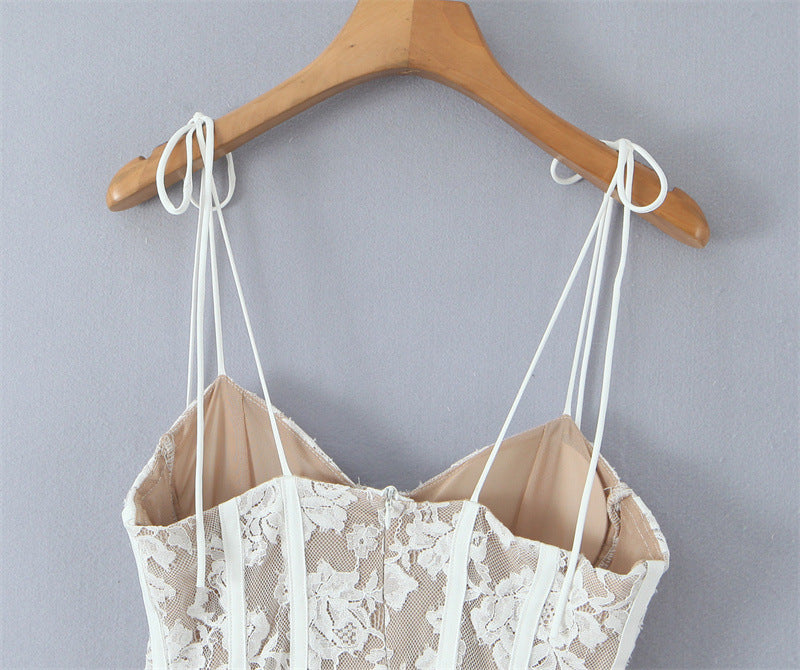 Solid Color Spaghetti Strap Lace Ruffled Dresses DP25C959