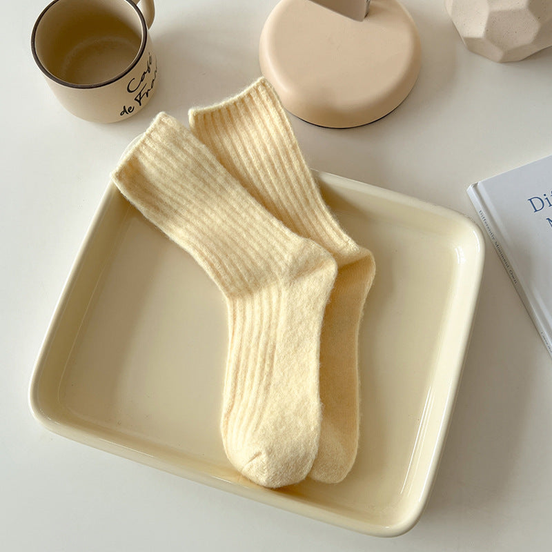 Solid Color Striped Thicken Plush Wool Crew Socks DP25H542